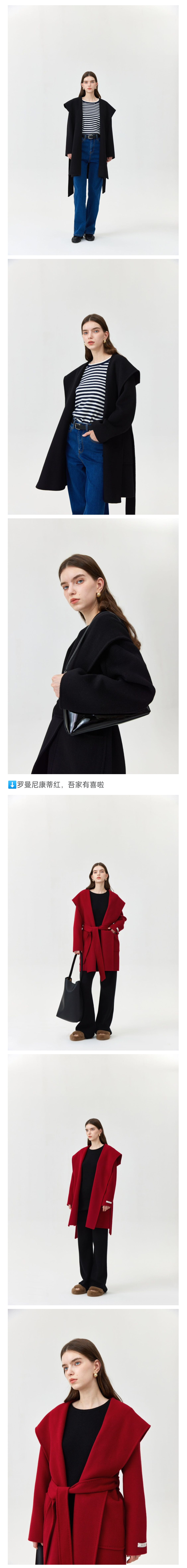 ⁵清仓159元【连帽羊毛大衣】原3999元 腰带无纽扣款 【AL3319】YY05-QTT-YTHP