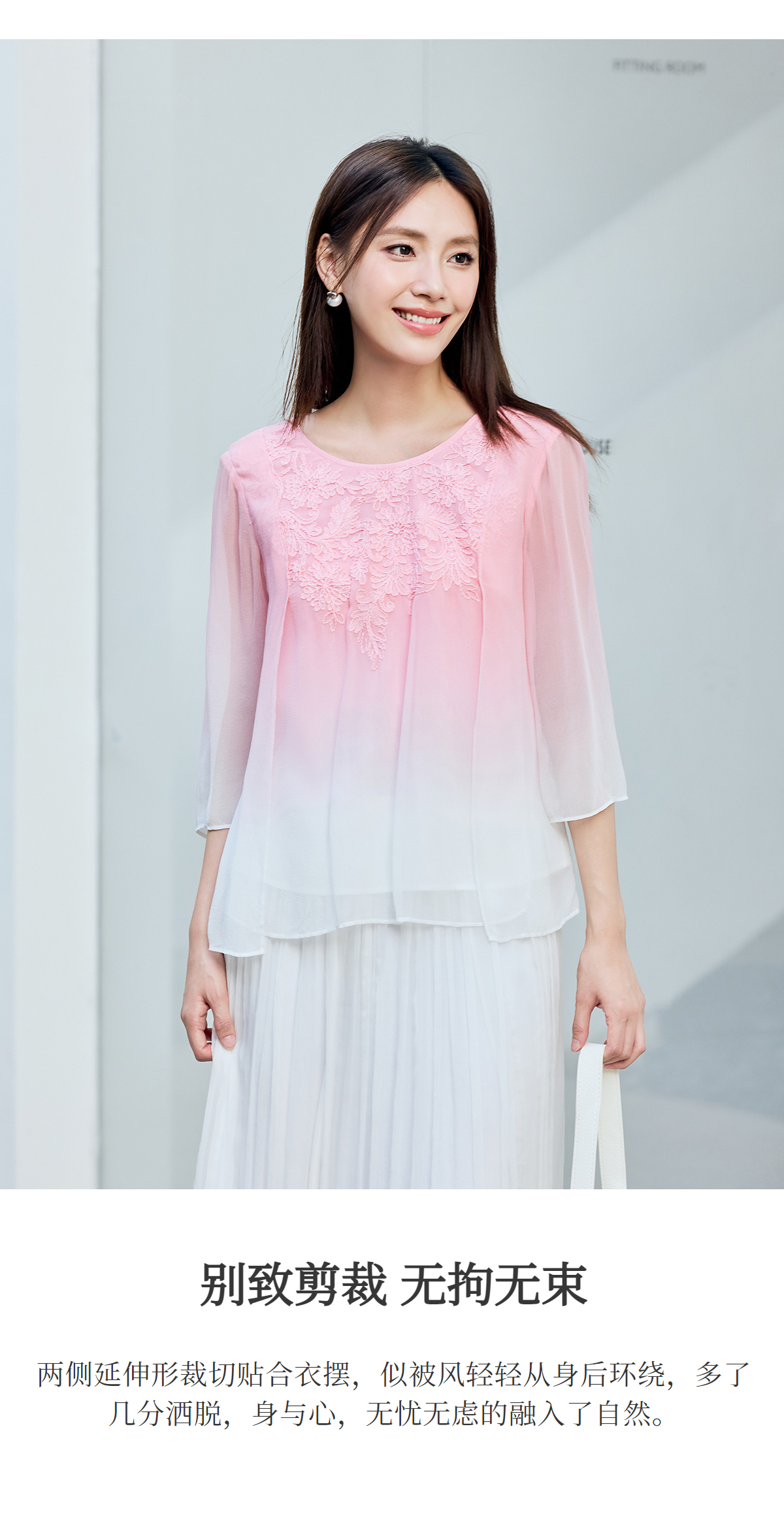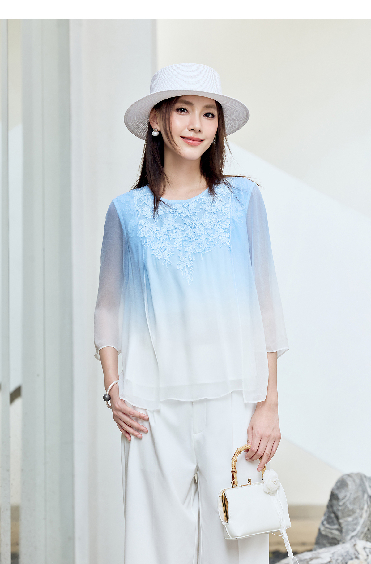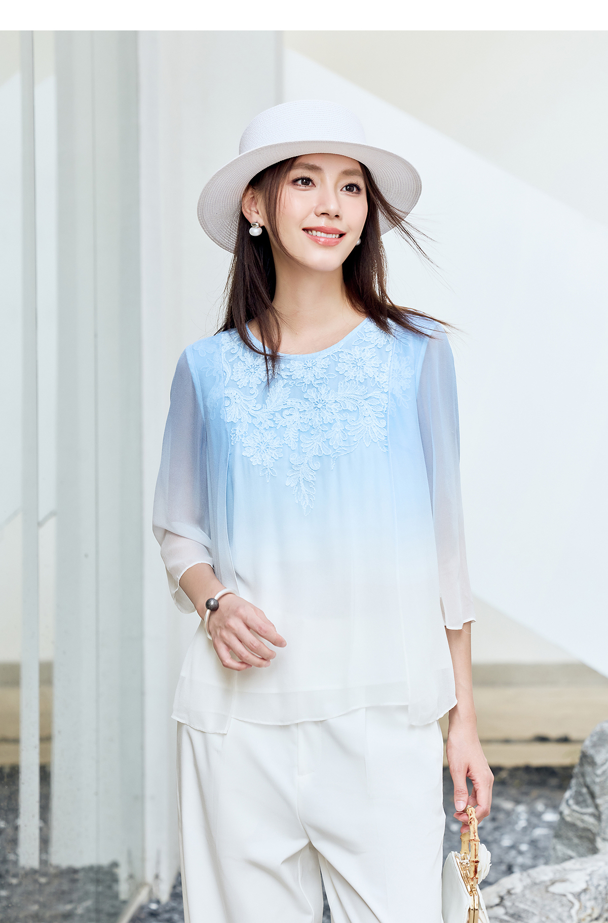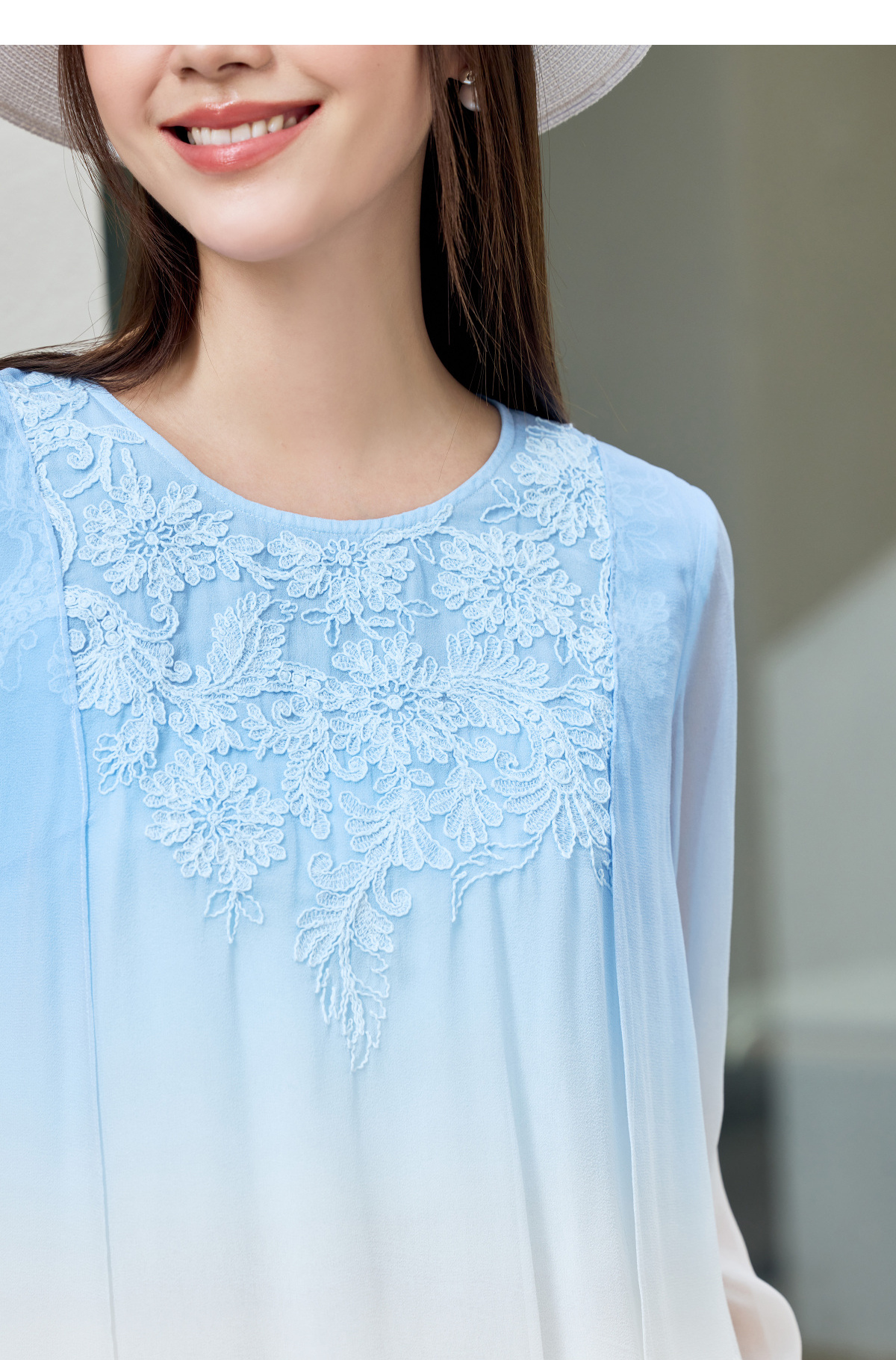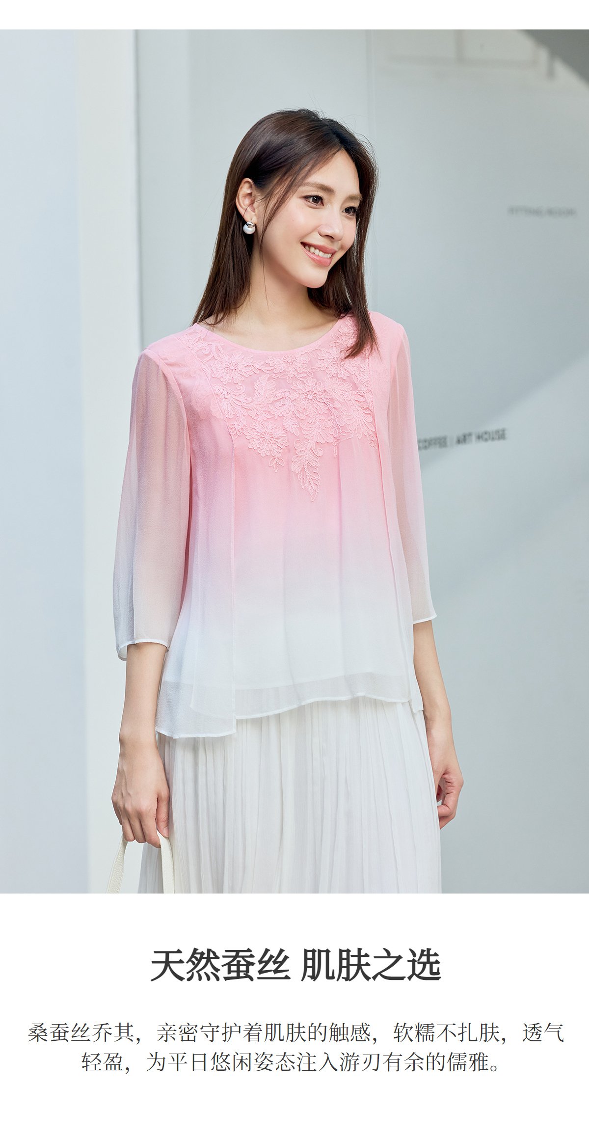 【林栖设计小店】桑蚕丝衬衫绣花优雅渐变多色开衩飞片2025春季新品上衣女1932147B