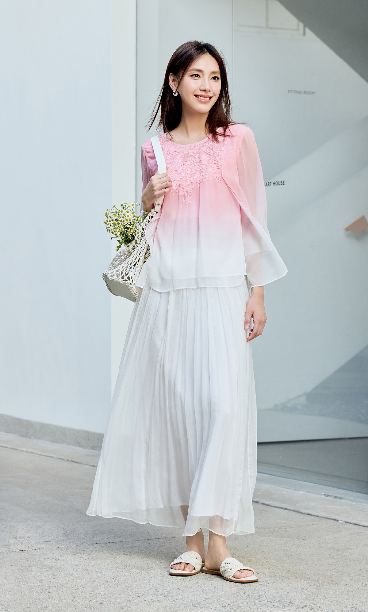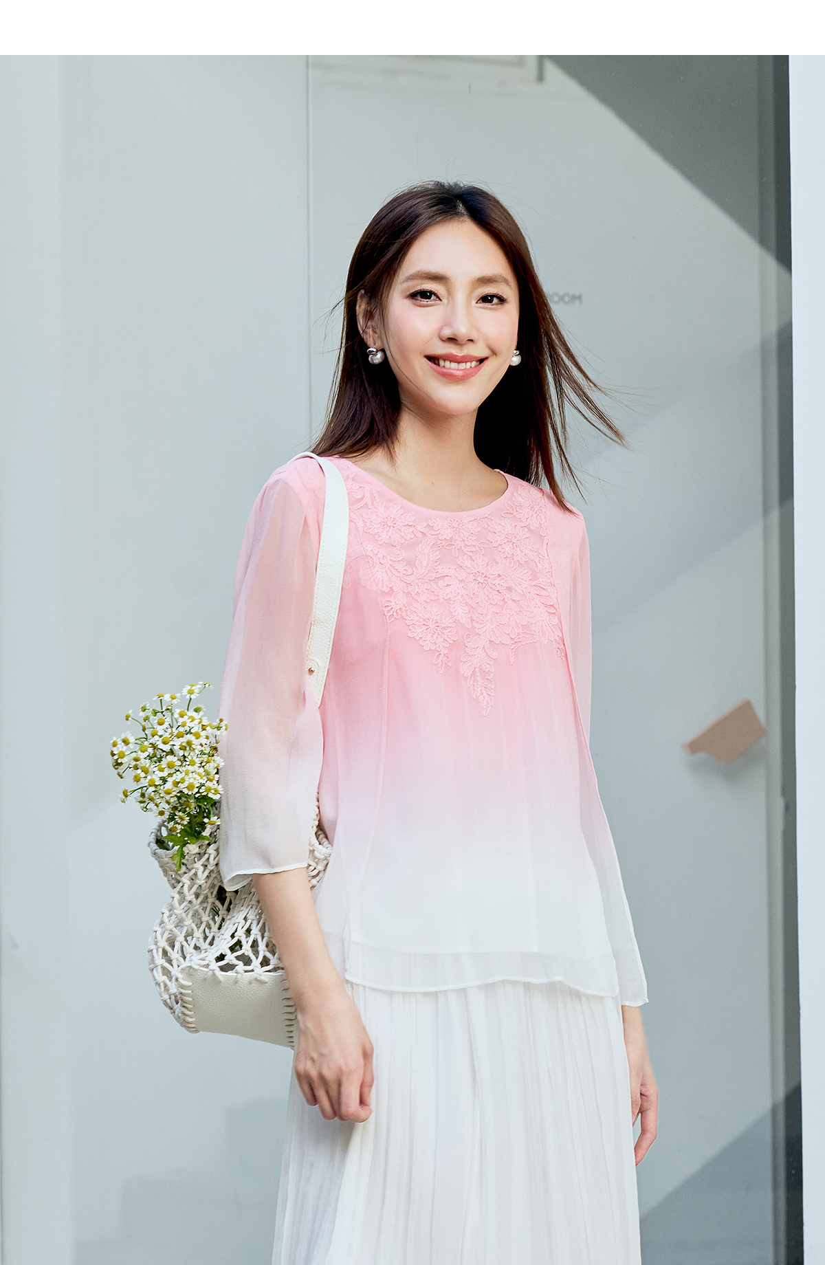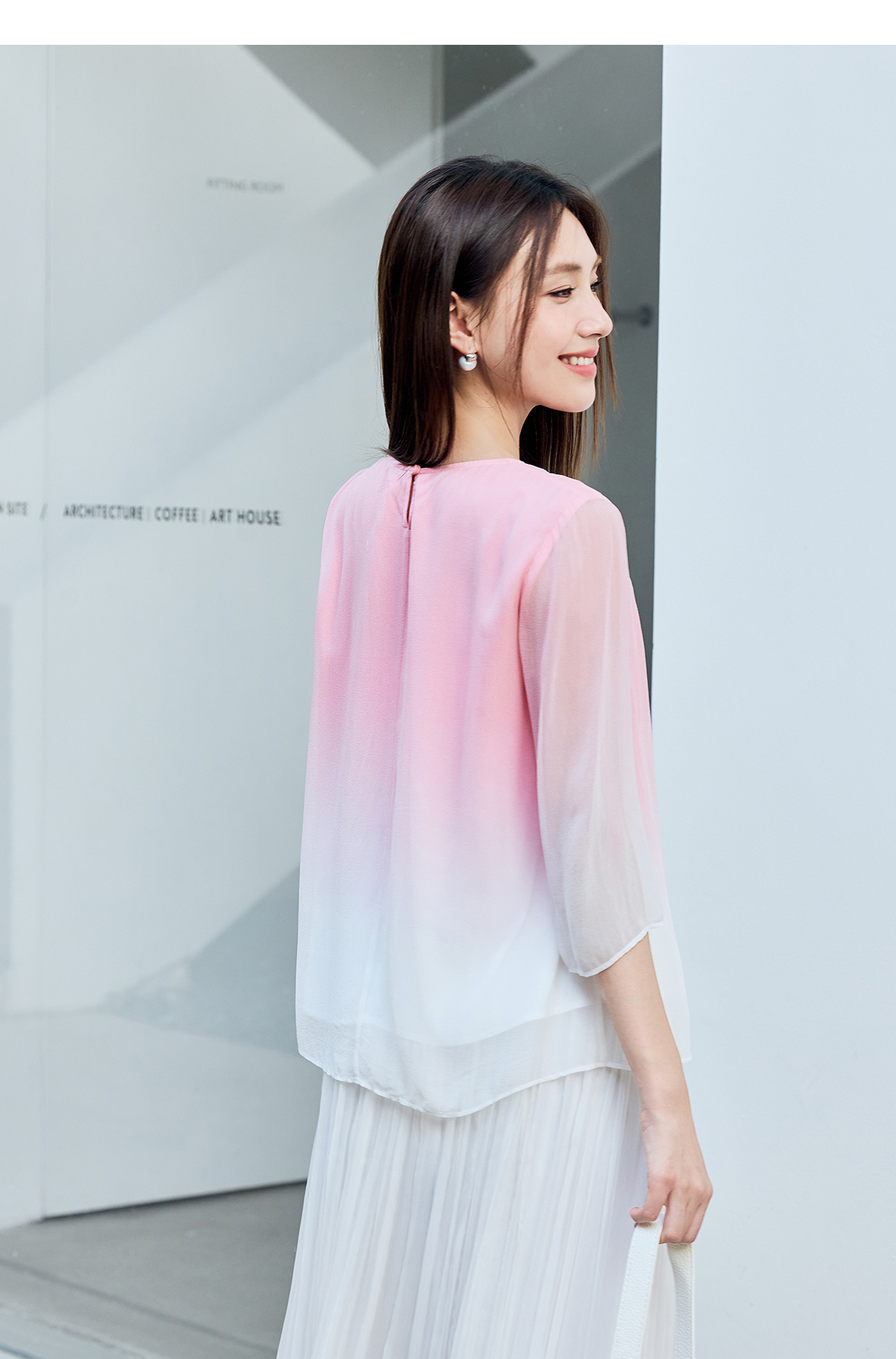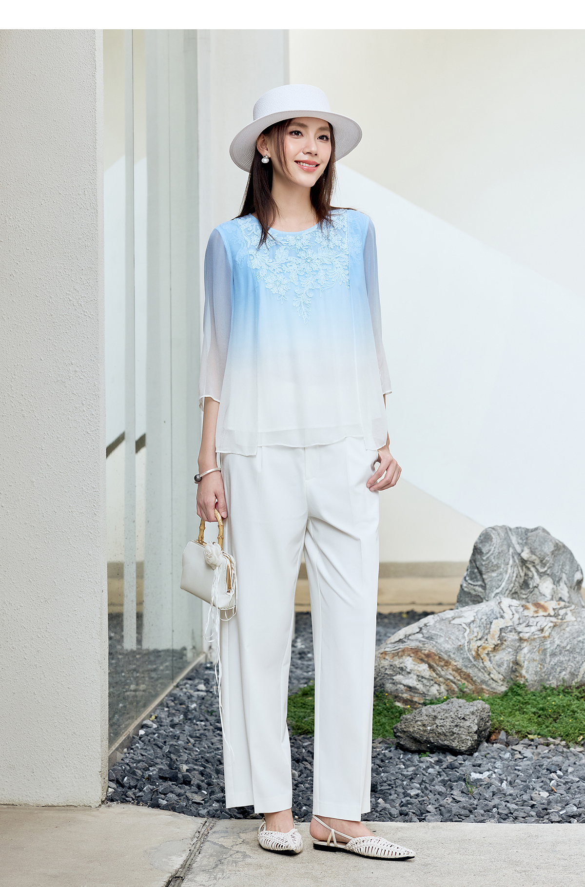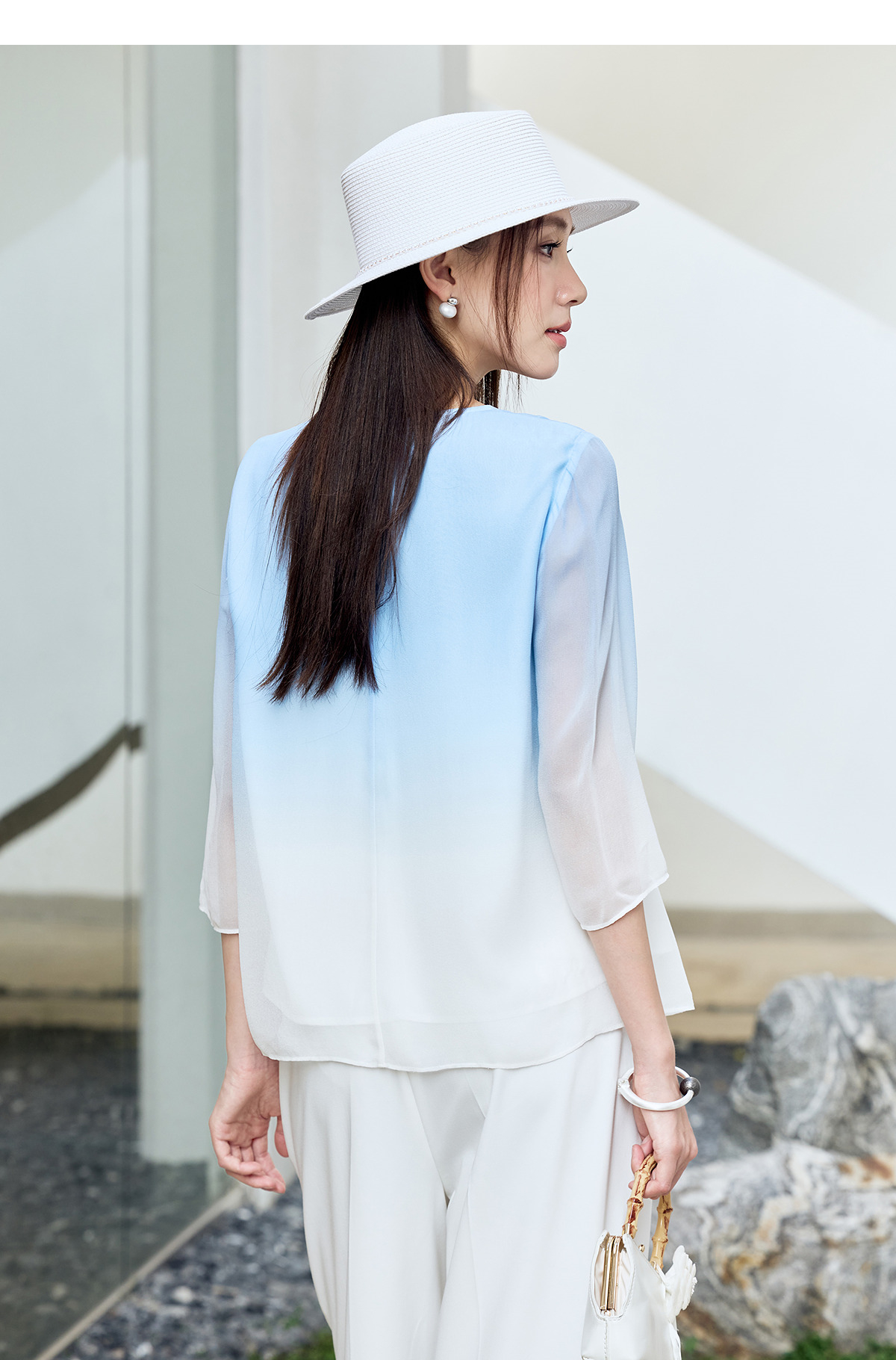 【林栖设计小店】桑蚕丝衬衫绣花优雅渐变多色开衩飞片2025春季新品上衣女1932147B