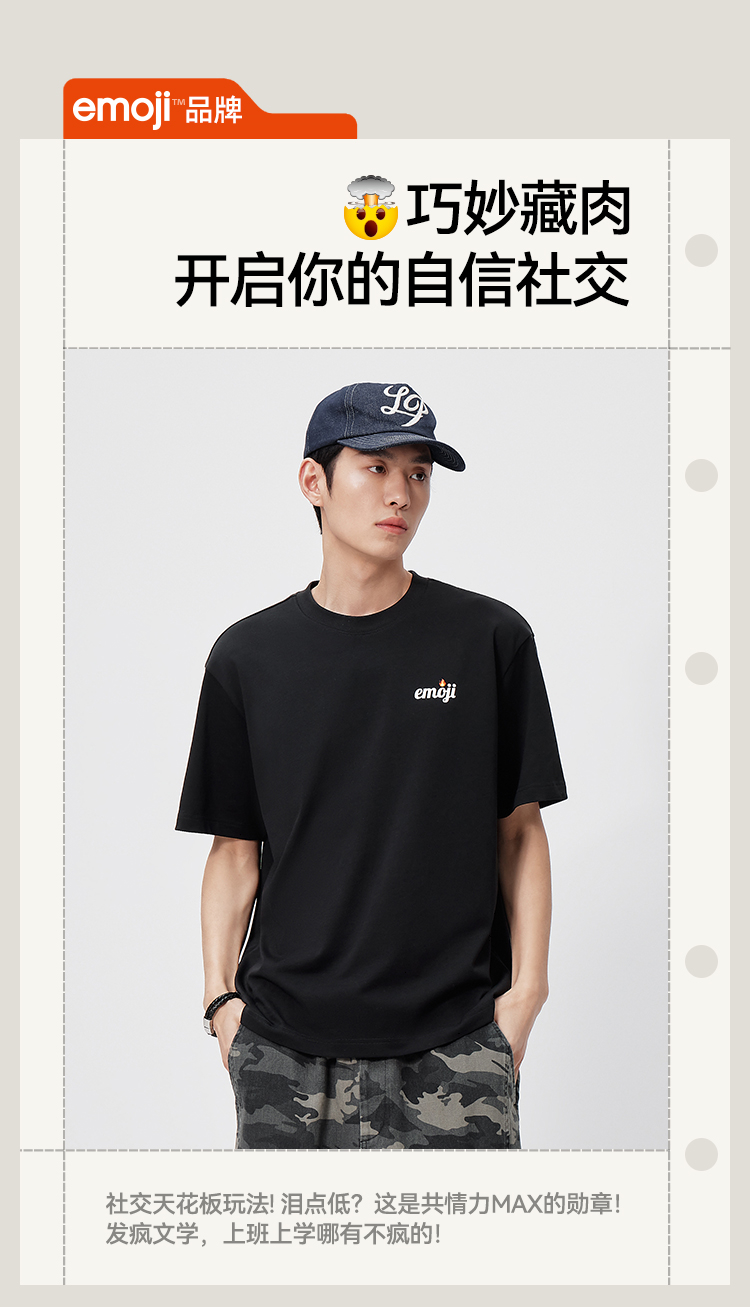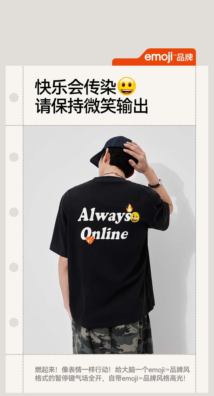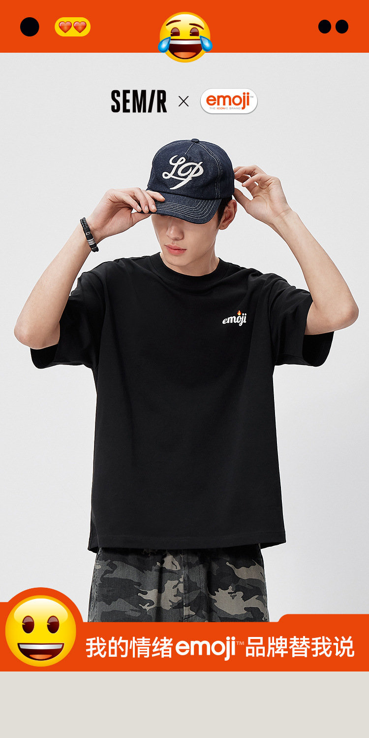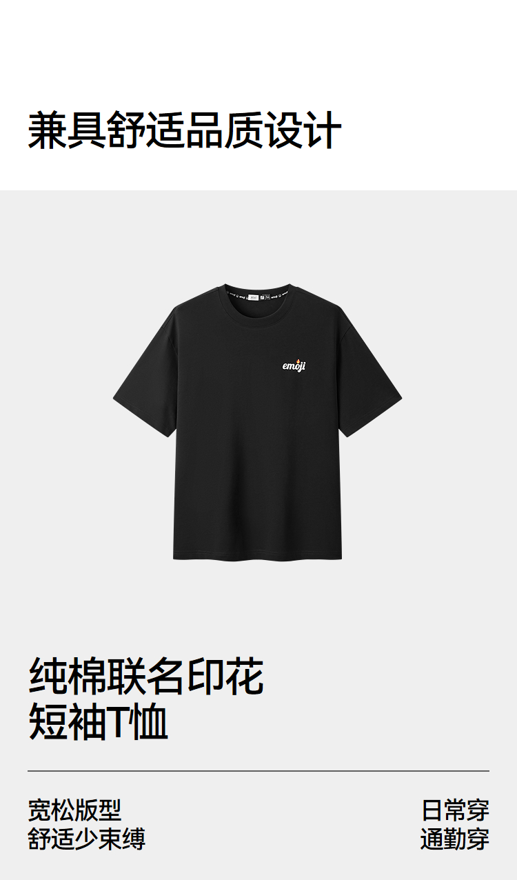 森马emoji™联名系列短袖T恤男夏纯棉字母胶印针织衫2026新款上衣
