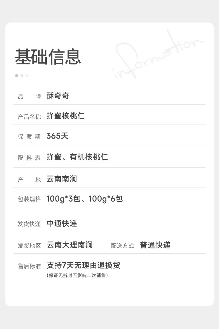 【有机】去皮蜂蜜核桃仁100g,健康无添加,解馋小零食
