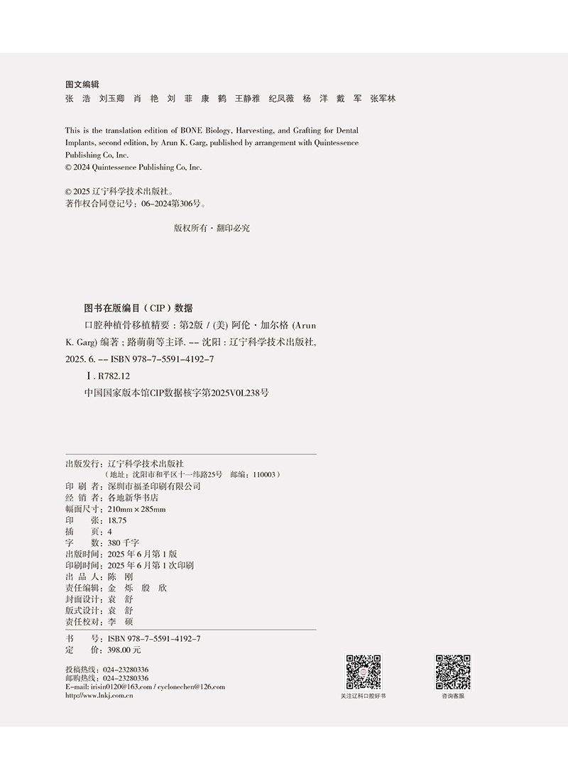 口腔种植骨移植精要 第2二版 阿伦加尔格 著 骨生物学临床种植 骨采集骨增量手术移植牙科 辽宁科学技术出版社9787559141927