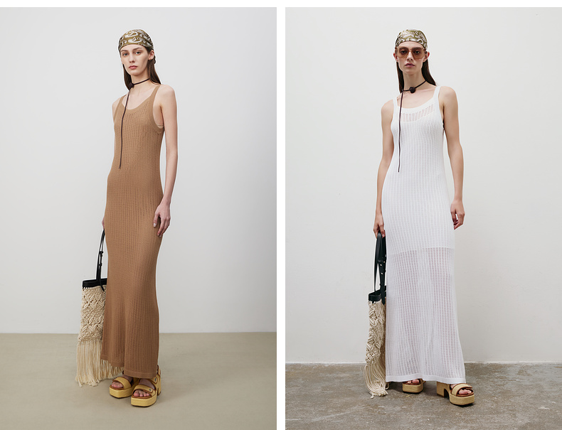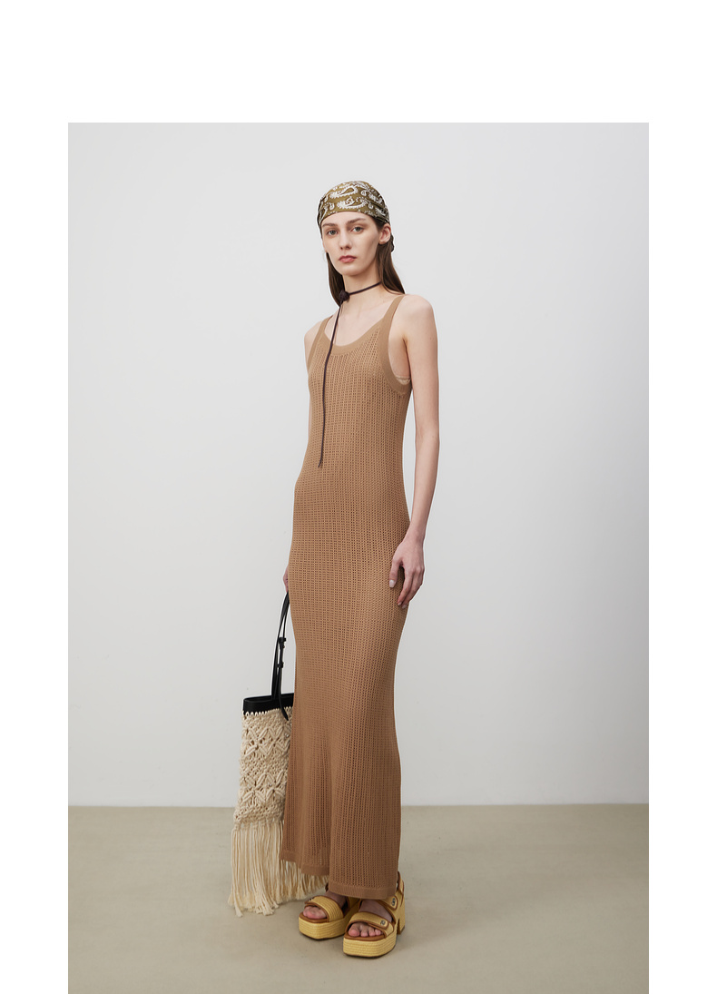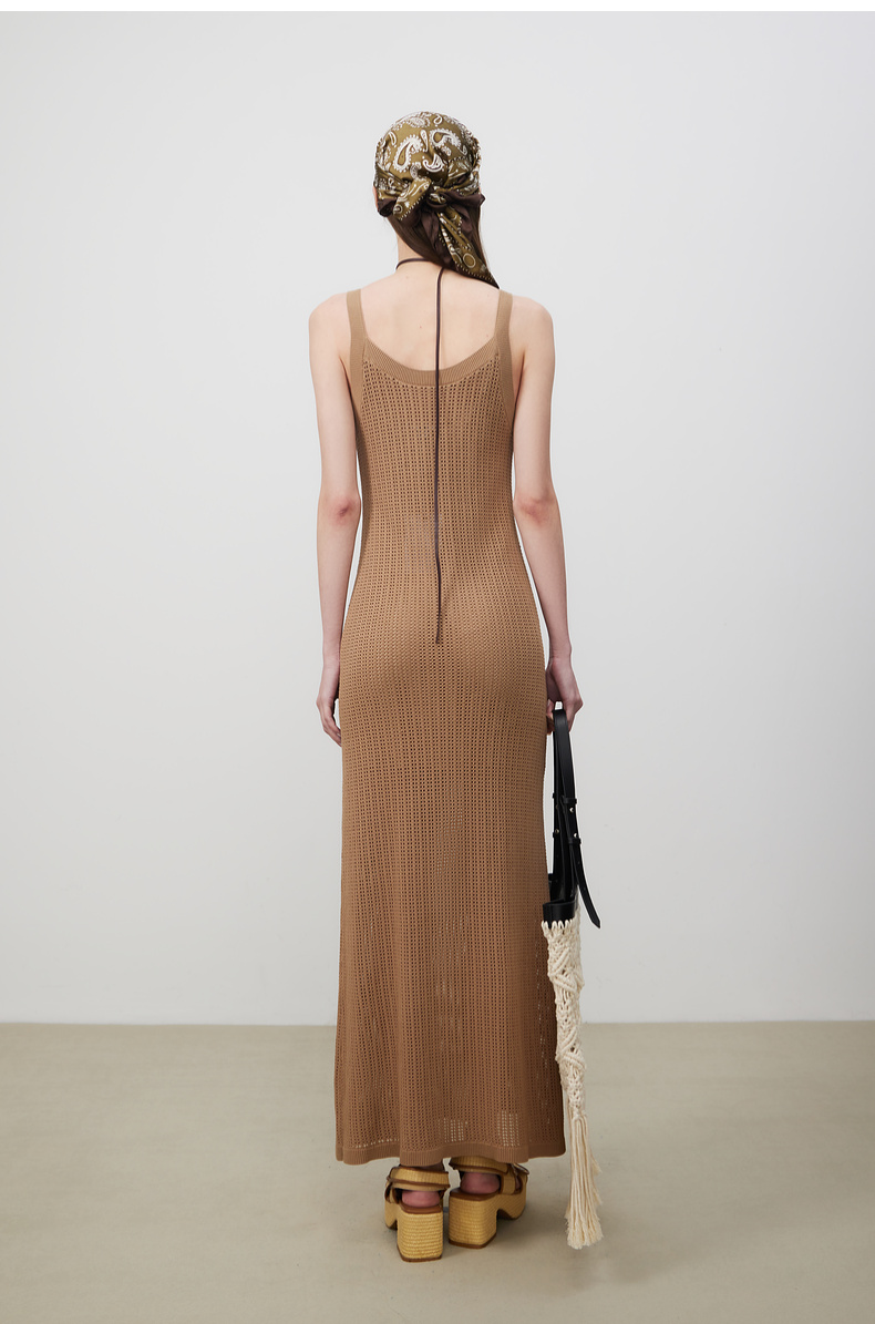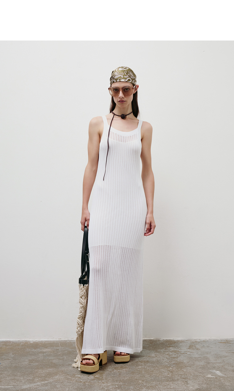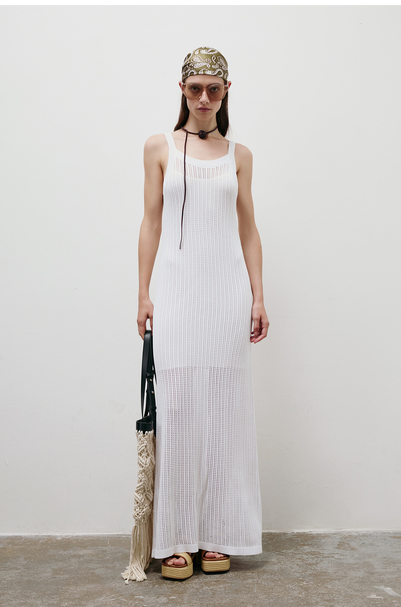 lost in echo2025春夏新款度假风针织手工钩花镂空透气长连衣裙女
