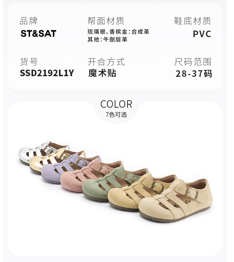 【童鞋】星期六复古风舒适透气男女童勃肯凉鞋SSD2192L1Y
