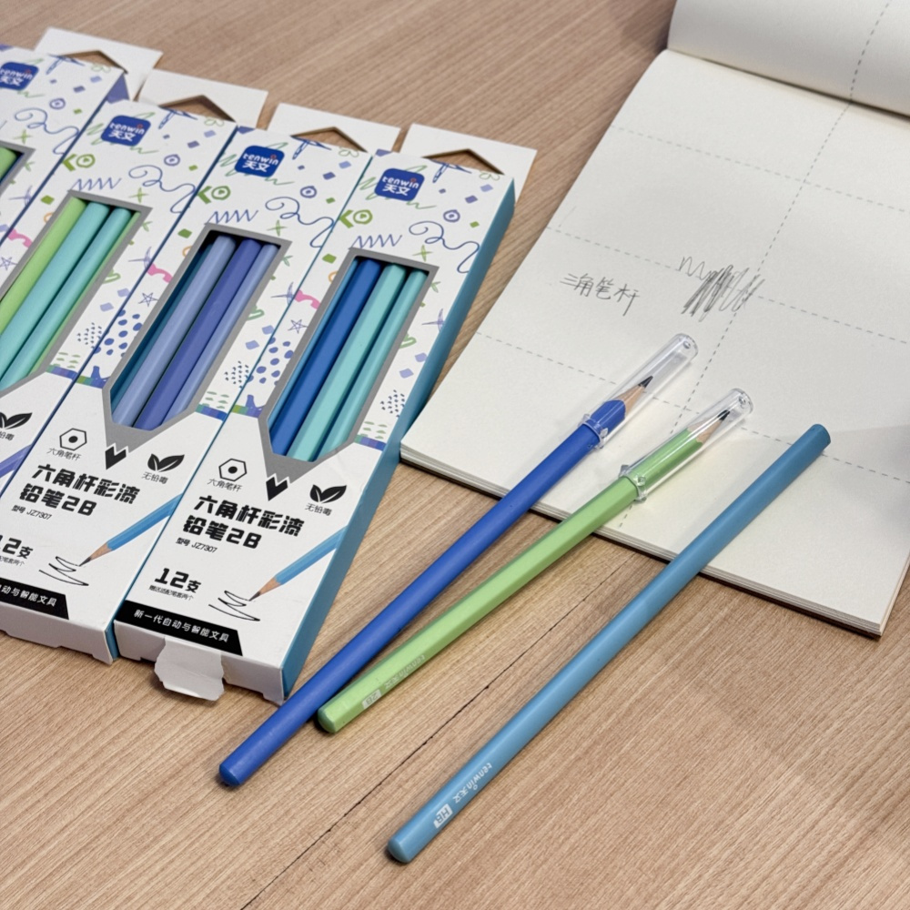 六角杆👇👇👇 有握笔基础的,选它! 贴合指面,手感舒适,适合已经掌握正确握姿的孩子,长时间书写也不累。 浓黑2B笔芯:采用优质石墨,质地细腻,书写超级顺滑,出墨均匀。 写出来的字颜色深、笔迹清晰,作业和考试卷面特别整洁干净,老师看了都好感度up!