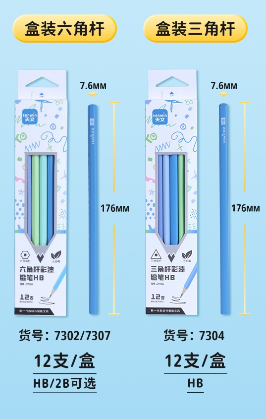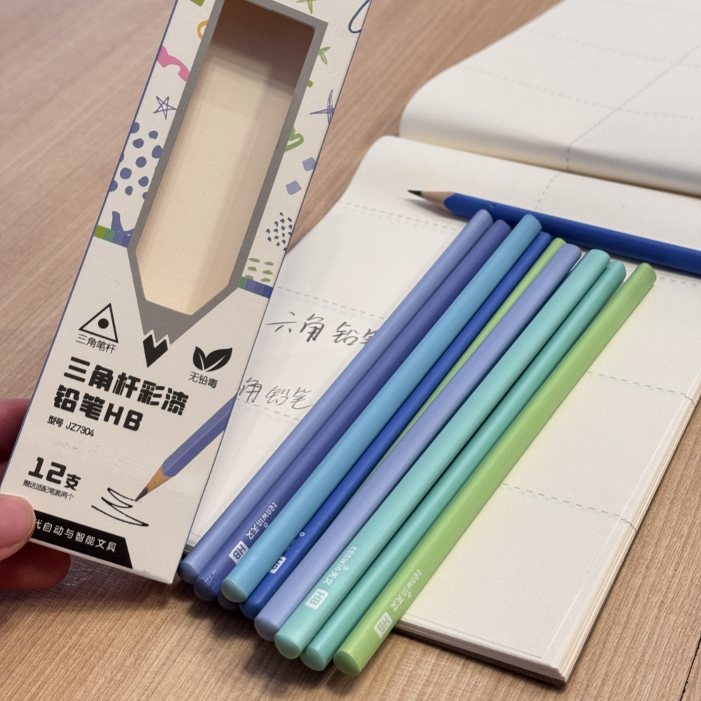三角杆👇👇👇 幼儿新手,培养握笔手感选它 专为小手设计,三个面稳稳贴合手指,自然引导正确三指握姿,养成好习惯从第一支笔开始! HB笔芯:软硬适中,书写流畅,而且特别耐压不易断!省钱又省妈!