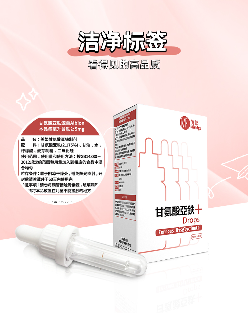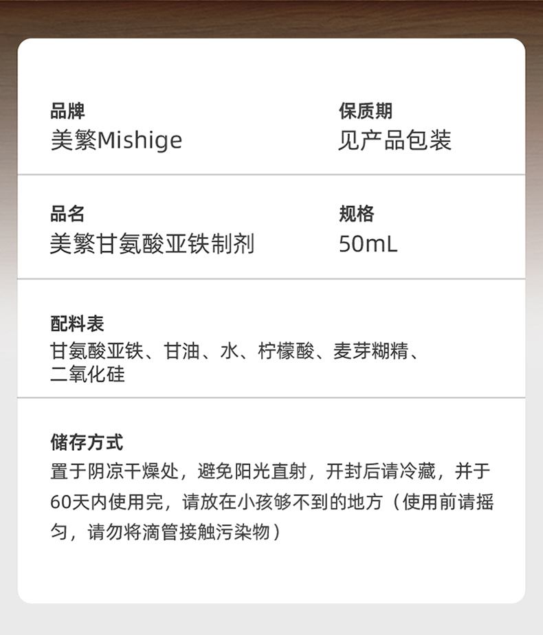 美繁Mishige甘氨酸亚铁制剂液体滴剂50ml