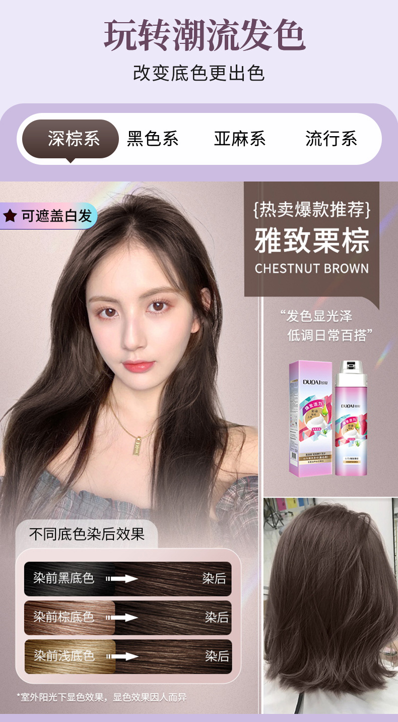 多爱云朵慕斯泡泡沫染发膏自己在家纯染发剂黑茶色女遮白发