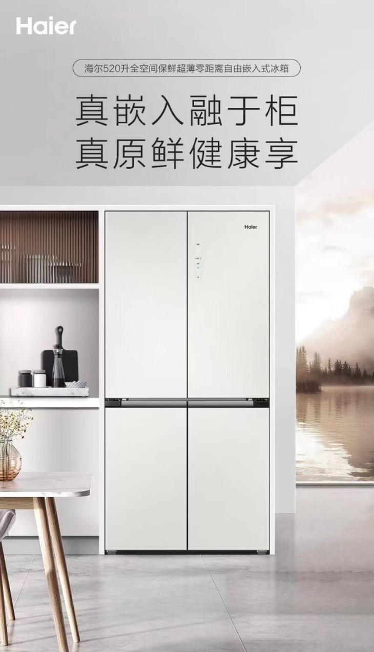 海尔(202774)BCD-520WGHTD1BGCU1家用智能变频风冷无霜零嵌入式十字对开门冰箱 BCD-520WGHTD1BGCU1