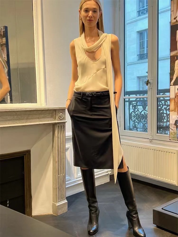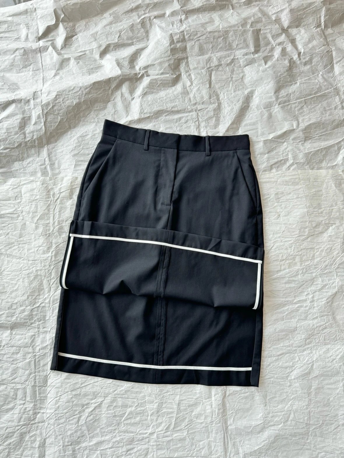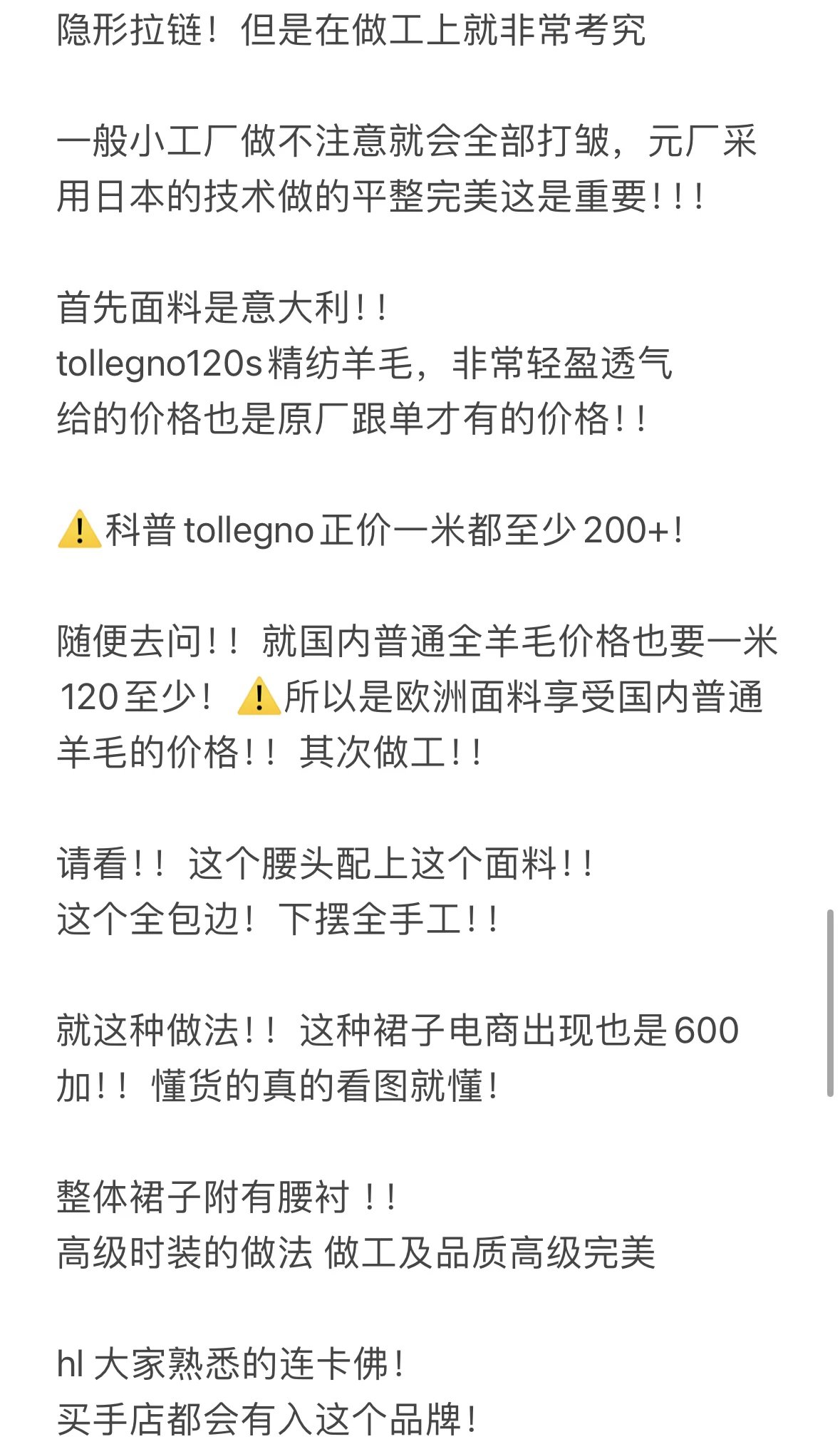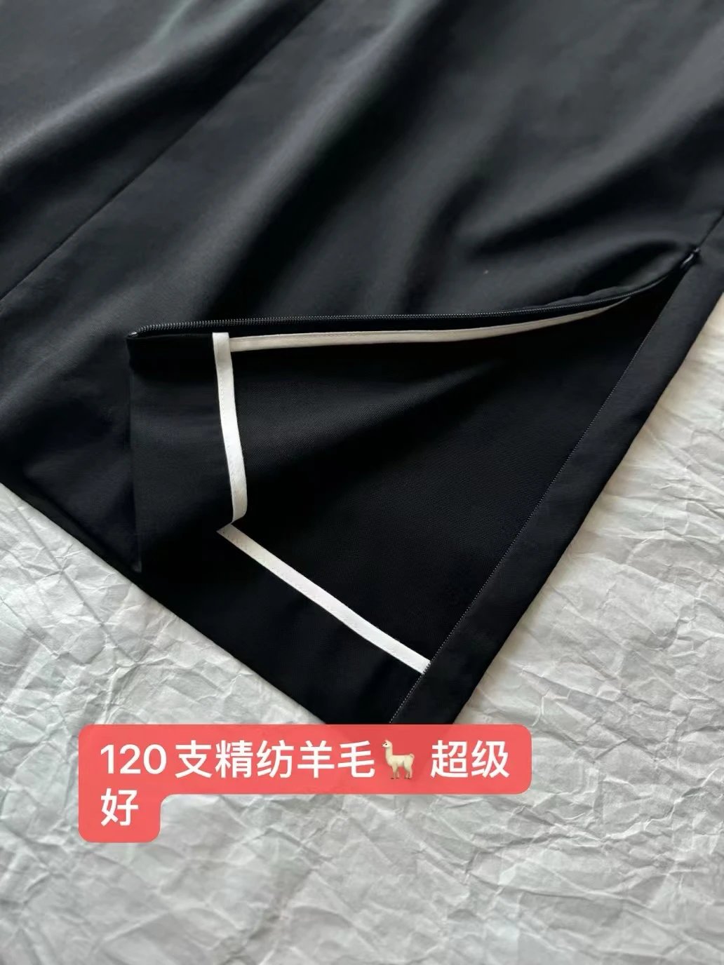 重磅!精纺羊毛黑半裙 意大利面料tollegno 120s精纺羊毛