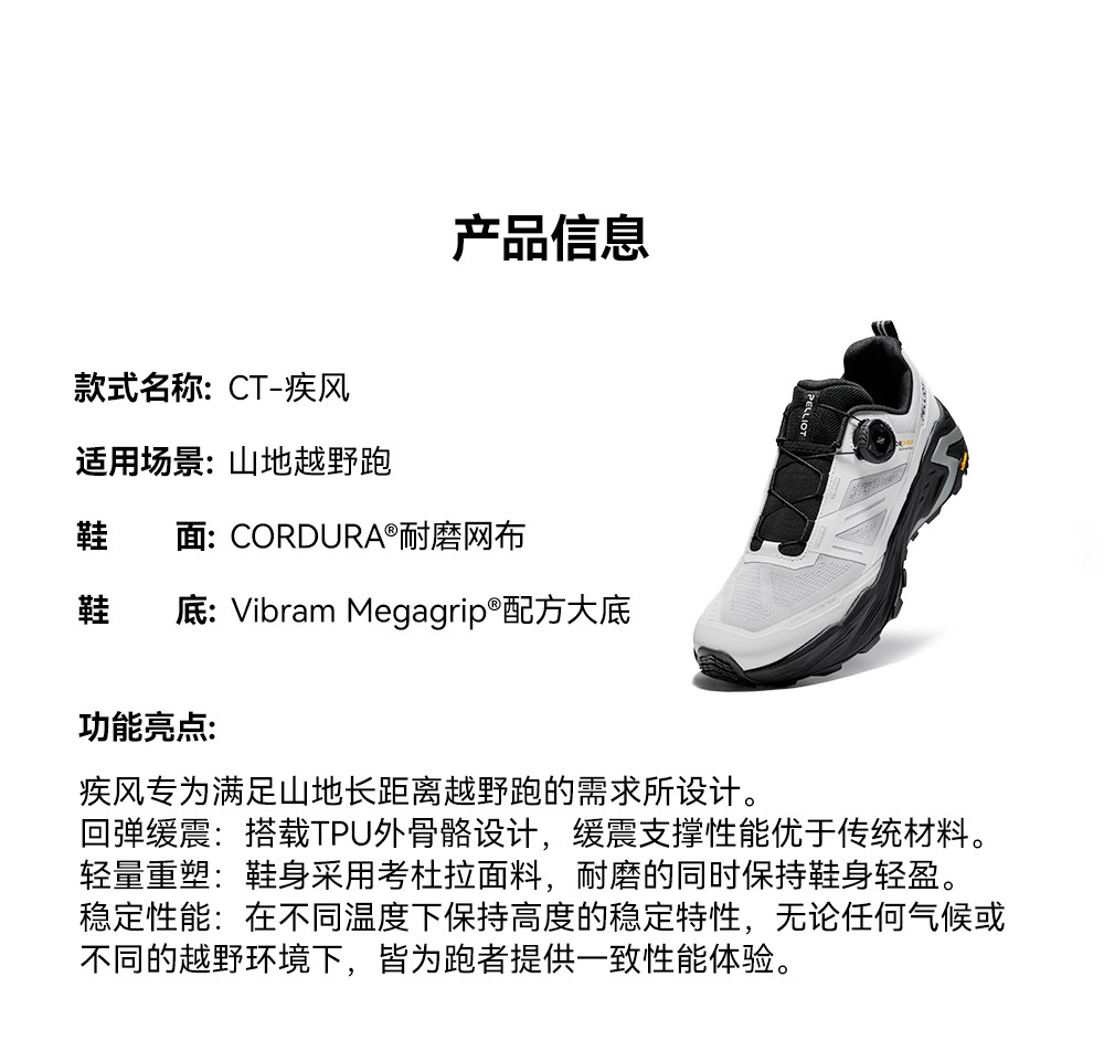 【CT-疾风】伯希和户外越野跑鞋男跑步Vibram防滑登山运动徒步鞋