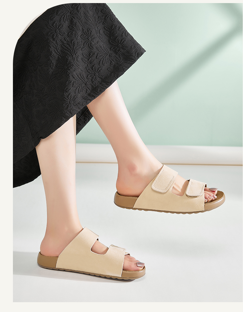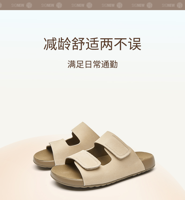 妈妈鞋2025新款夏季软底中年单鞋一脚蹬小皮鞋凉鞋女