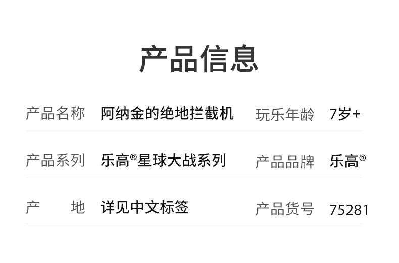 乐高LEGO 阿纳金的绝地拦截机75281