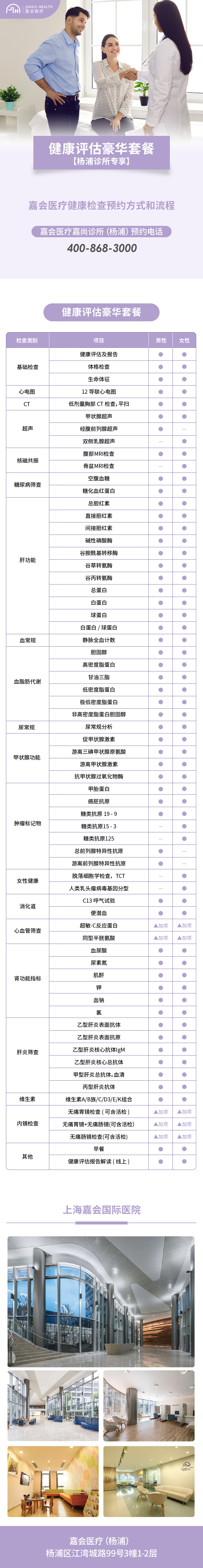 【本套餐仅限于:嘉会医疗嘉尚诊所(杨浦) 使用】