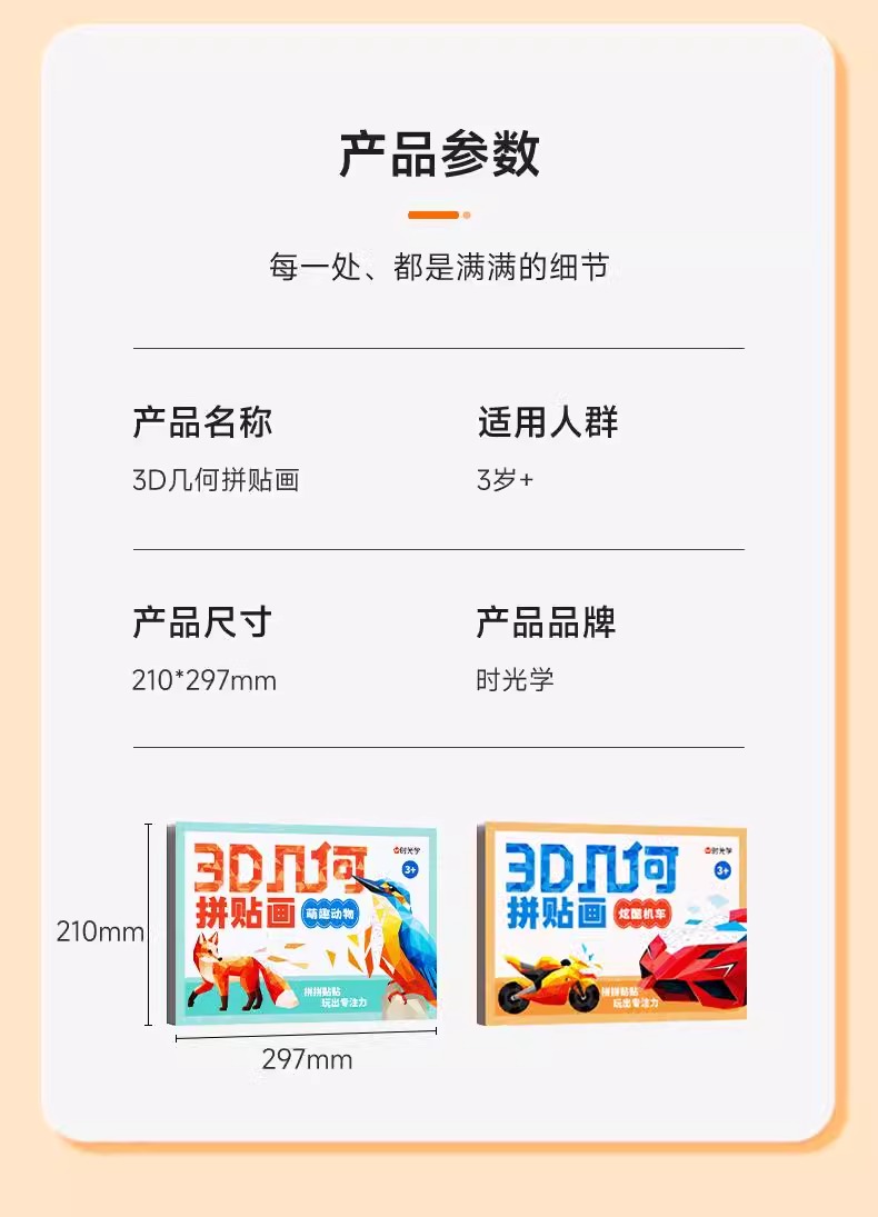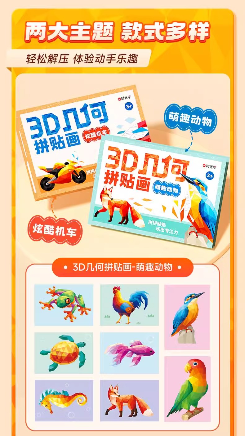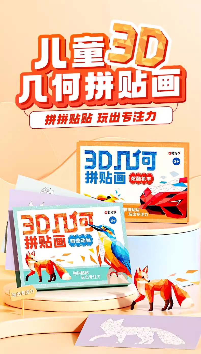 福利!【一盒8个图案】时光学3D几何拼贴画儿童幼儿园手工创意益智贴纸专注力提升