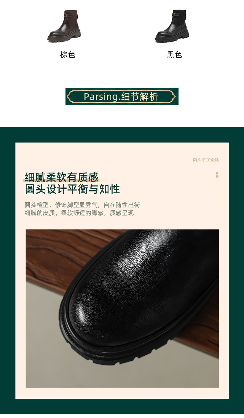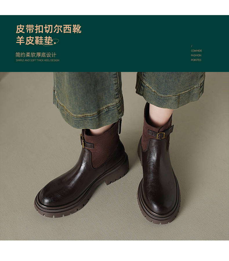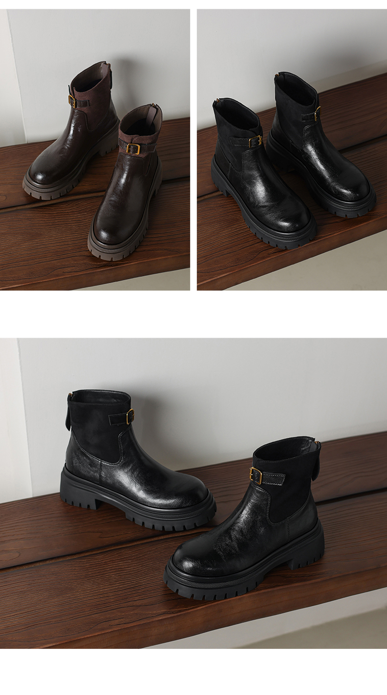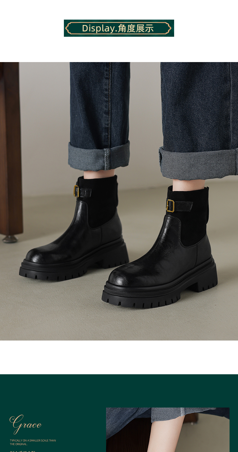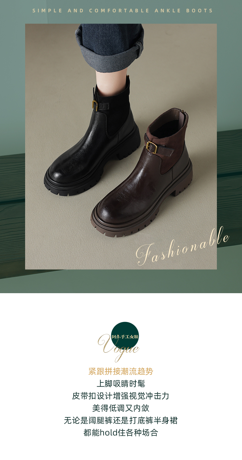 阿么手工女鞋潮流厚底增高短靴通勤2025新款皮带扣拼接时装靴5CM