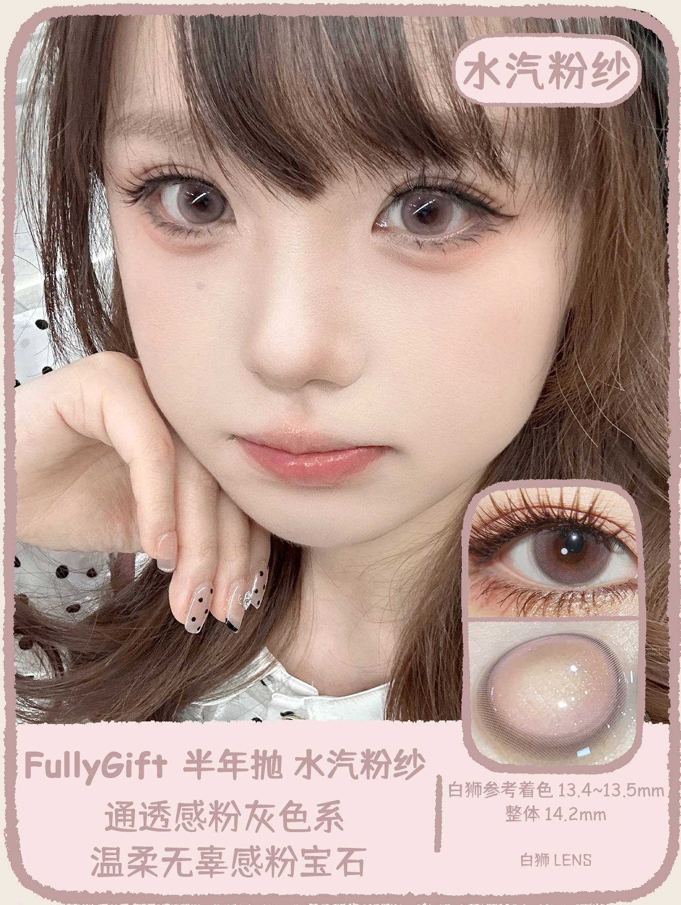 Fully Gift半年抛 · 火漆盐湖&水汽粉纱| 14.2mm白狮参考着色中大直径 韩产半年抛
