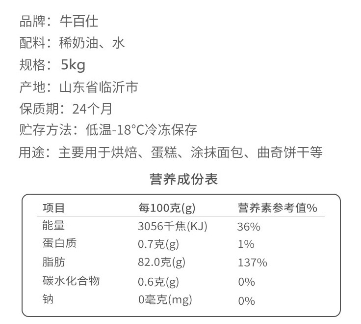 5kg 牛佰仕黄油 动物性原味黄油 冷冻储存 淡味大黄油牛油烘焙饼干面包