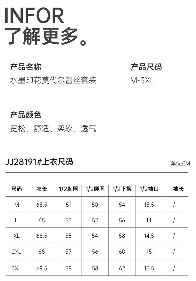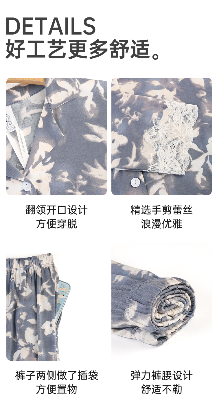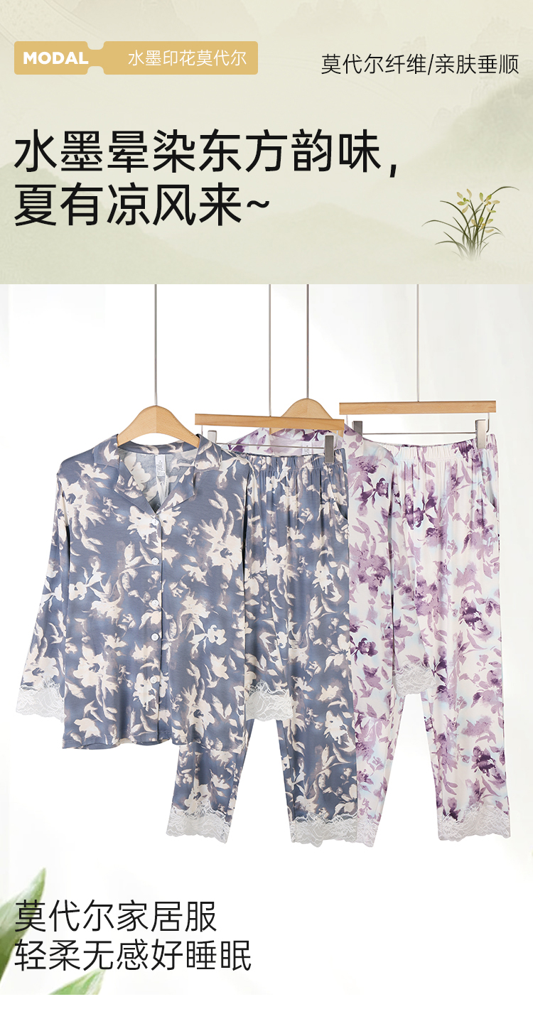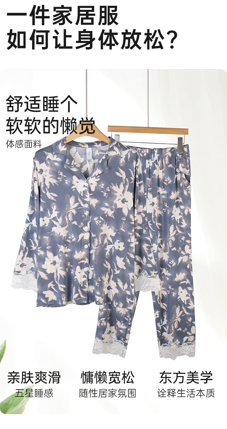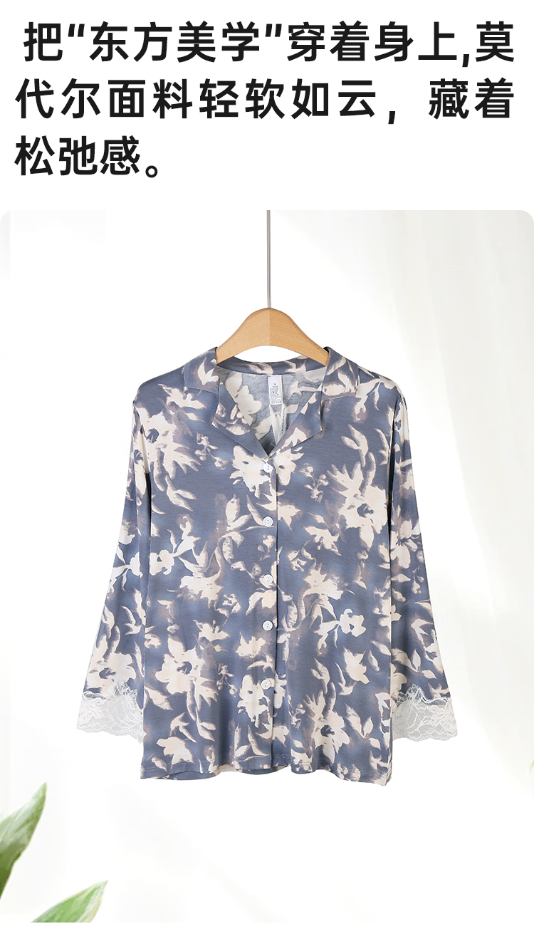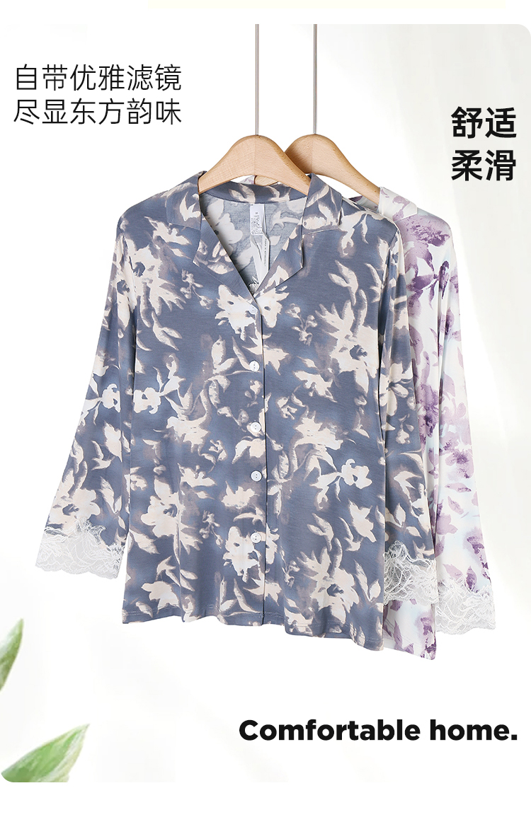 美奈川睡衣女水墨印花套装长袖上衣长裤家居服套装可外穿 JJ28191