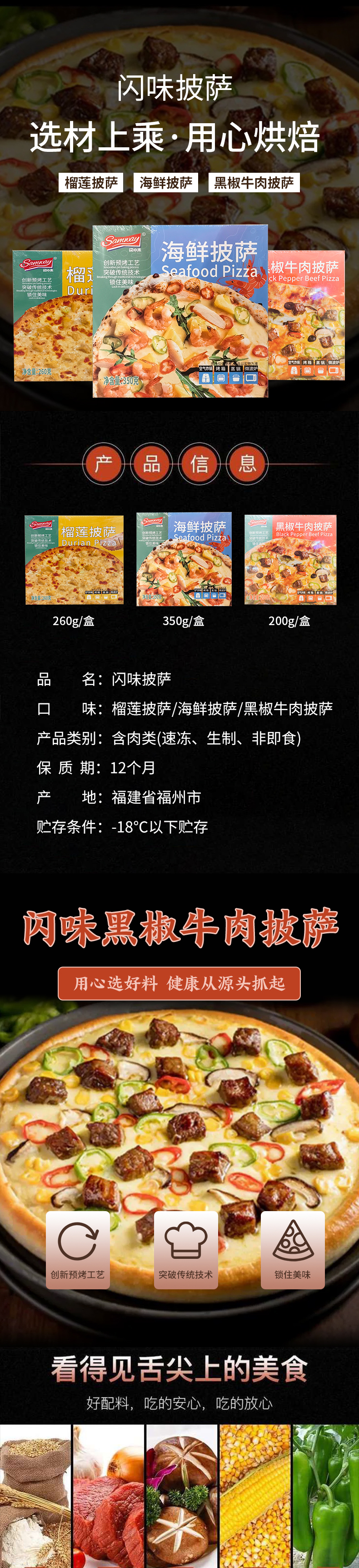 闪味榴莲|海鲜|黑椒牛肉披萨200-350g