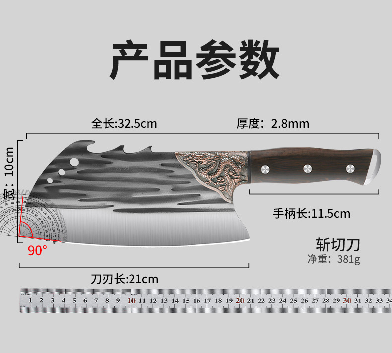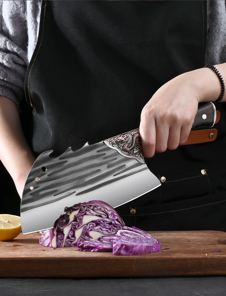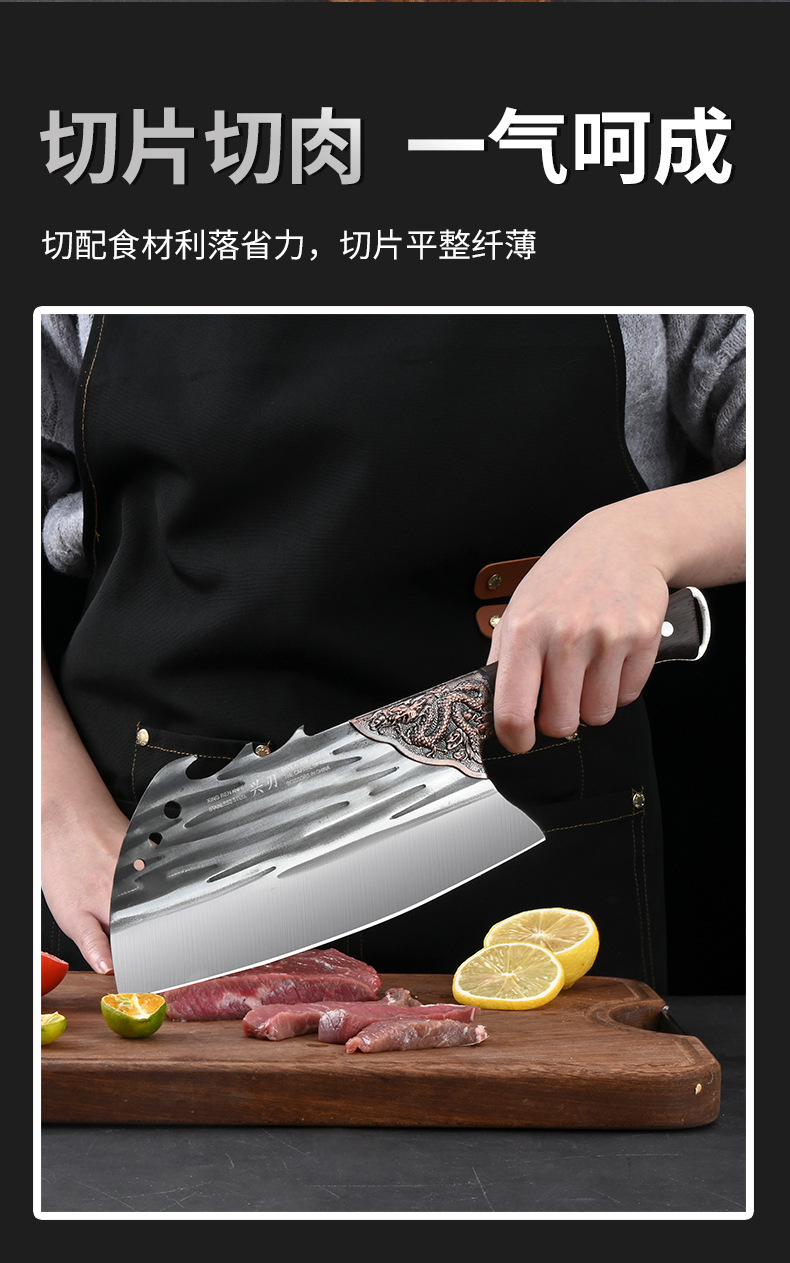 「29.9到手!锤纹斩切刀」家庭厨房用不锈钢锻打菜刀 精美电镀护手斩切刀锋利切片刀厨房用品
