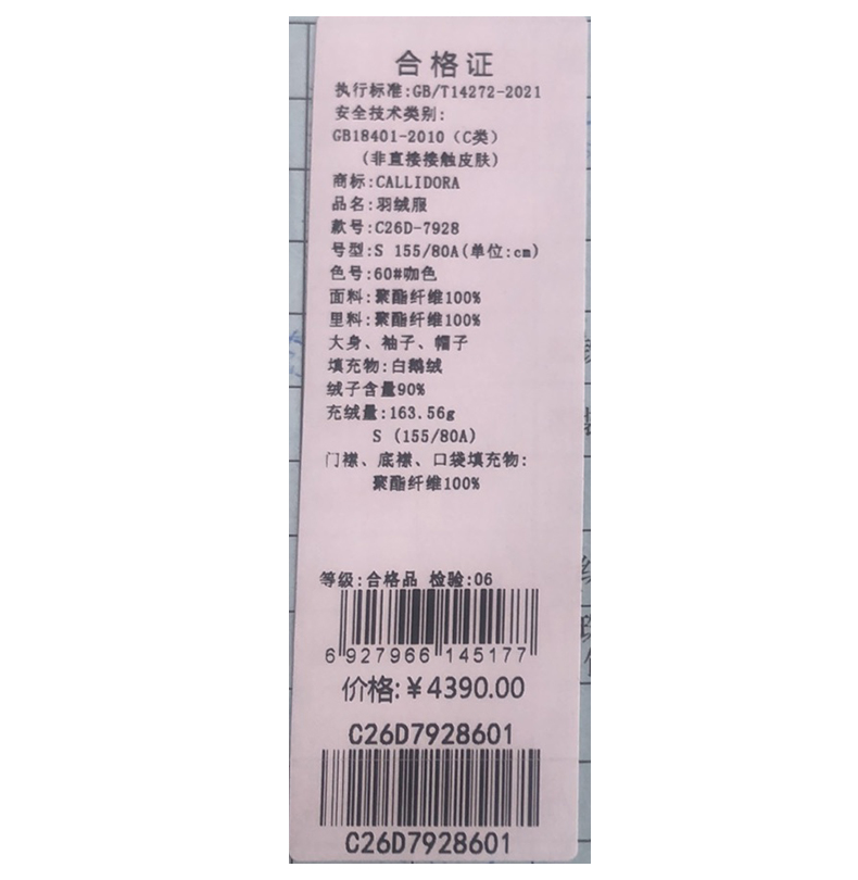 卡莉朵拉羽绒服C26D7928
