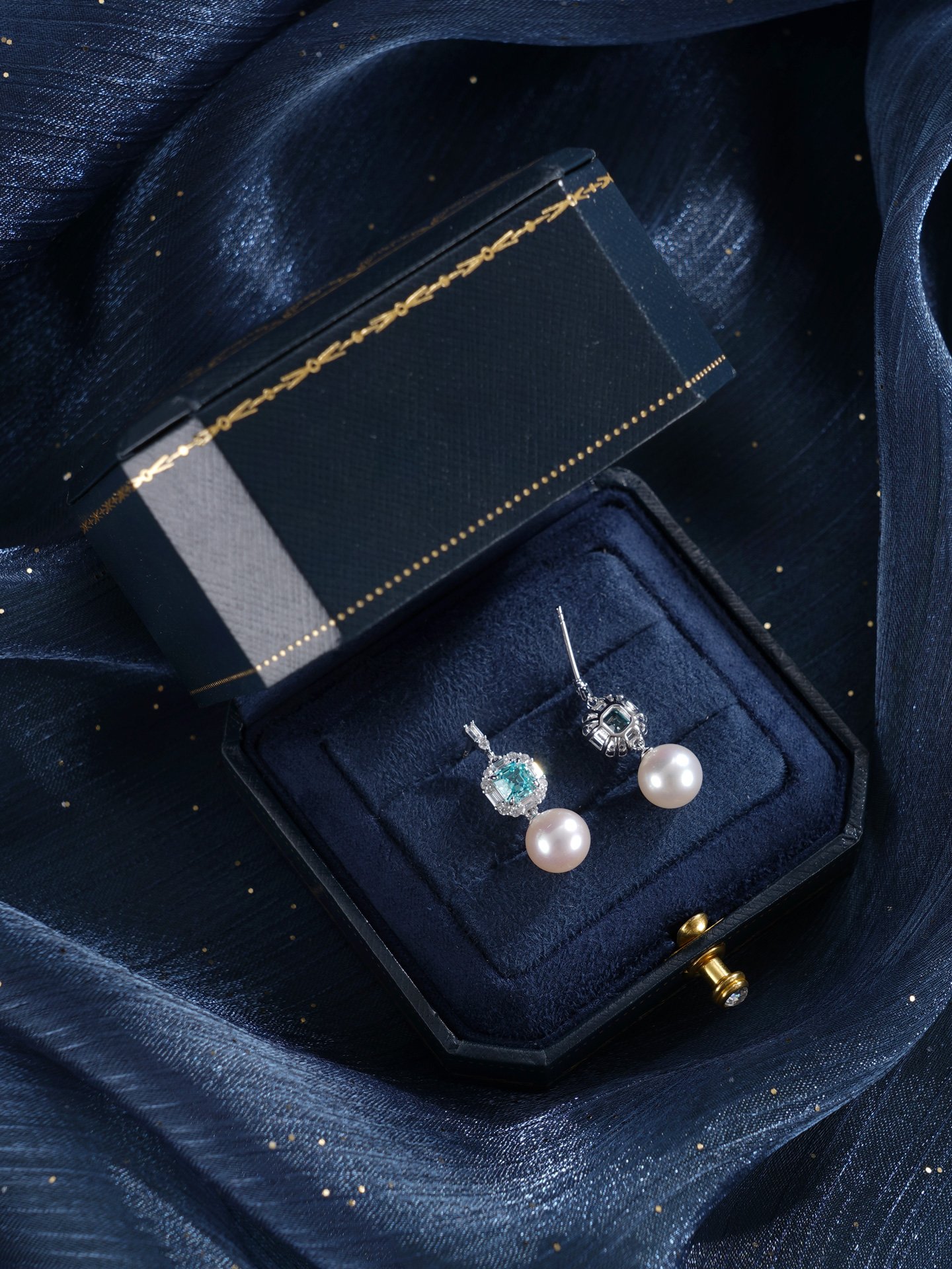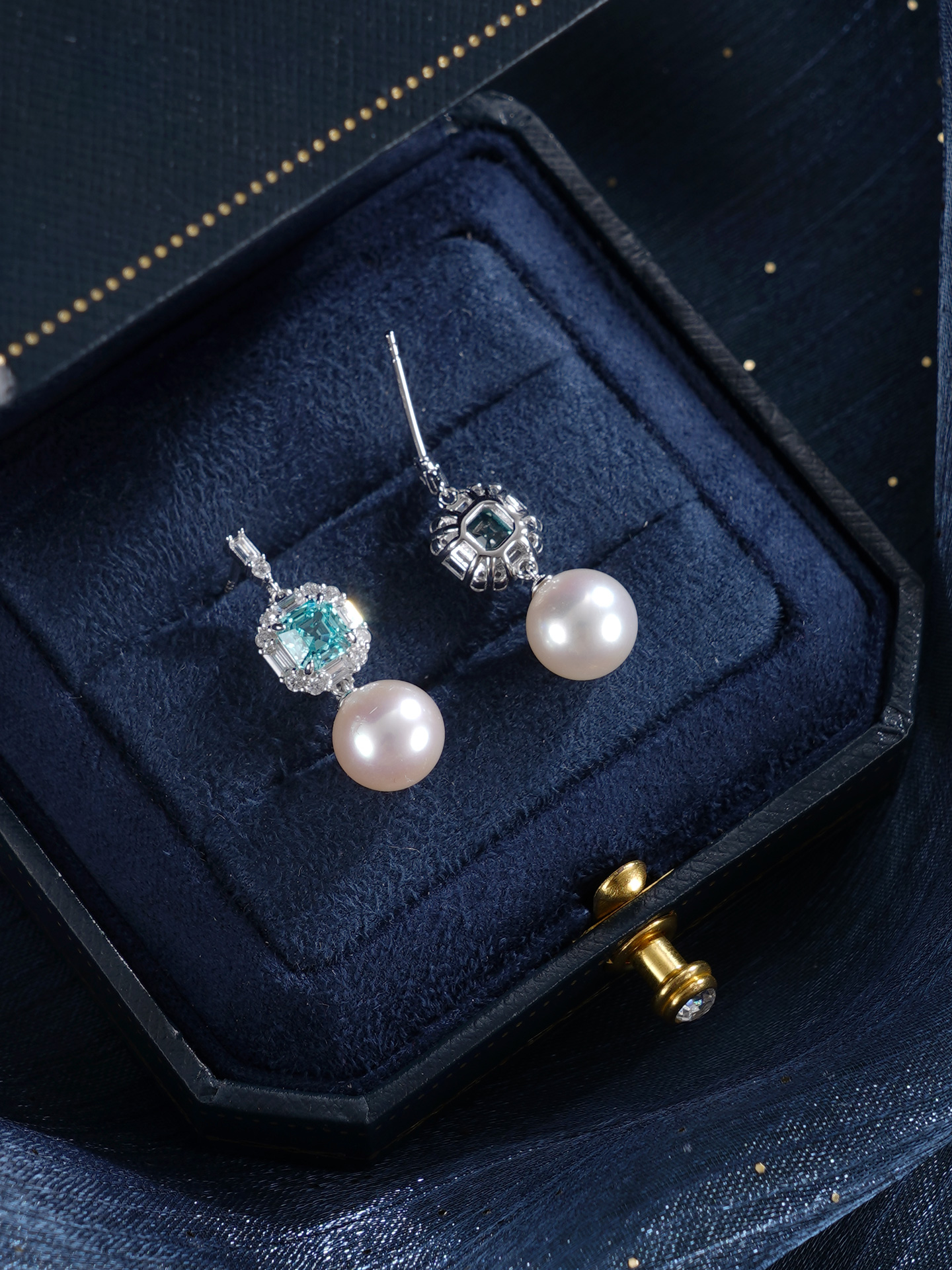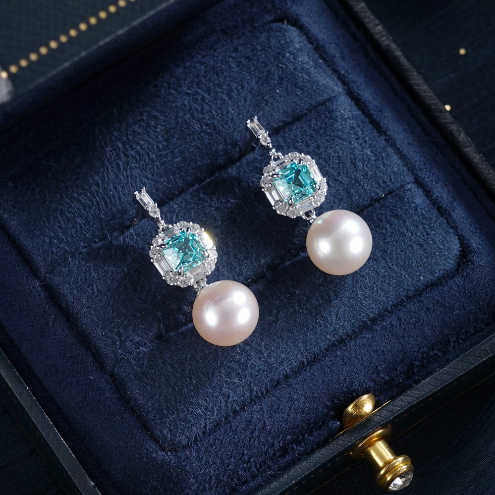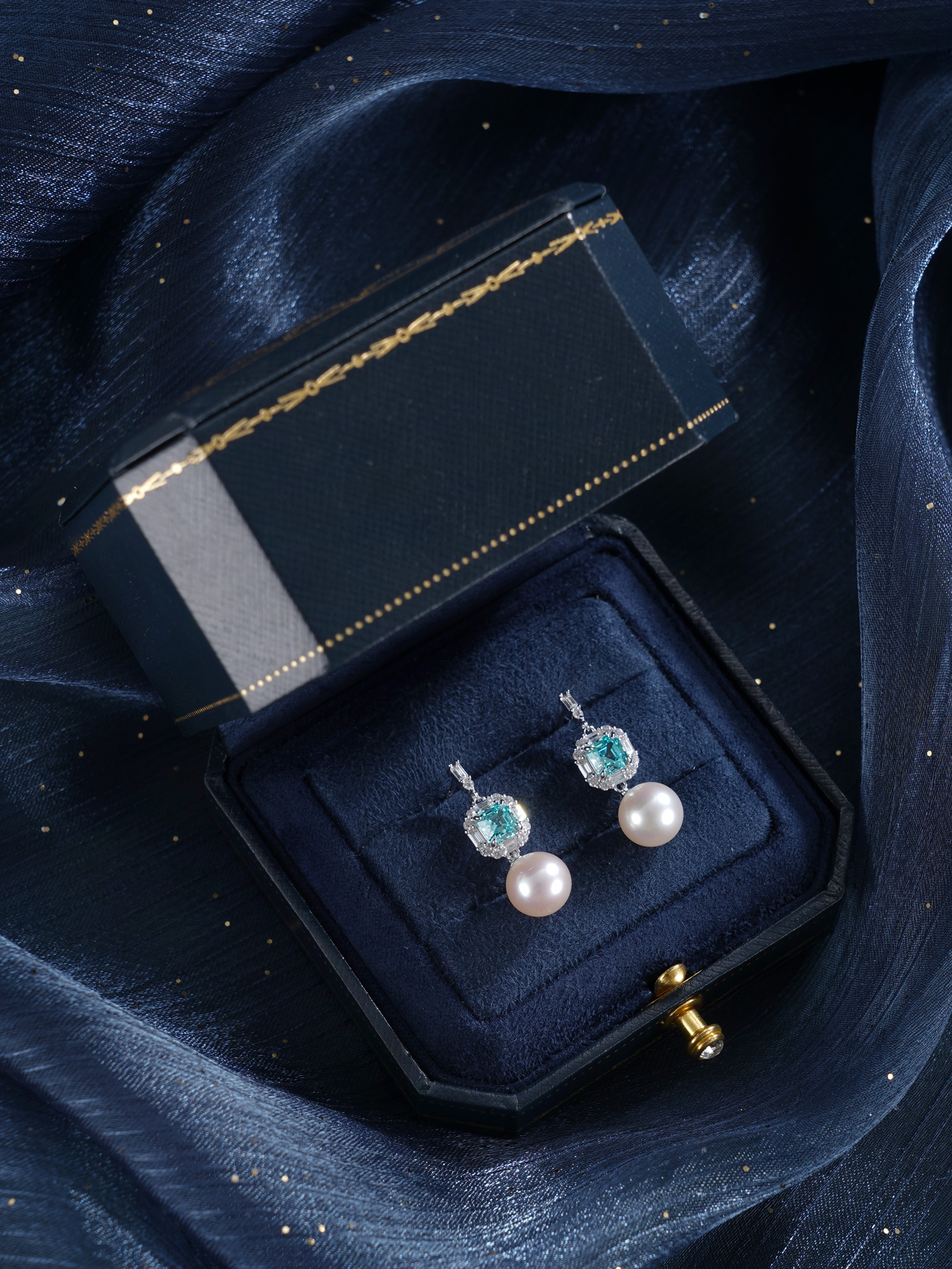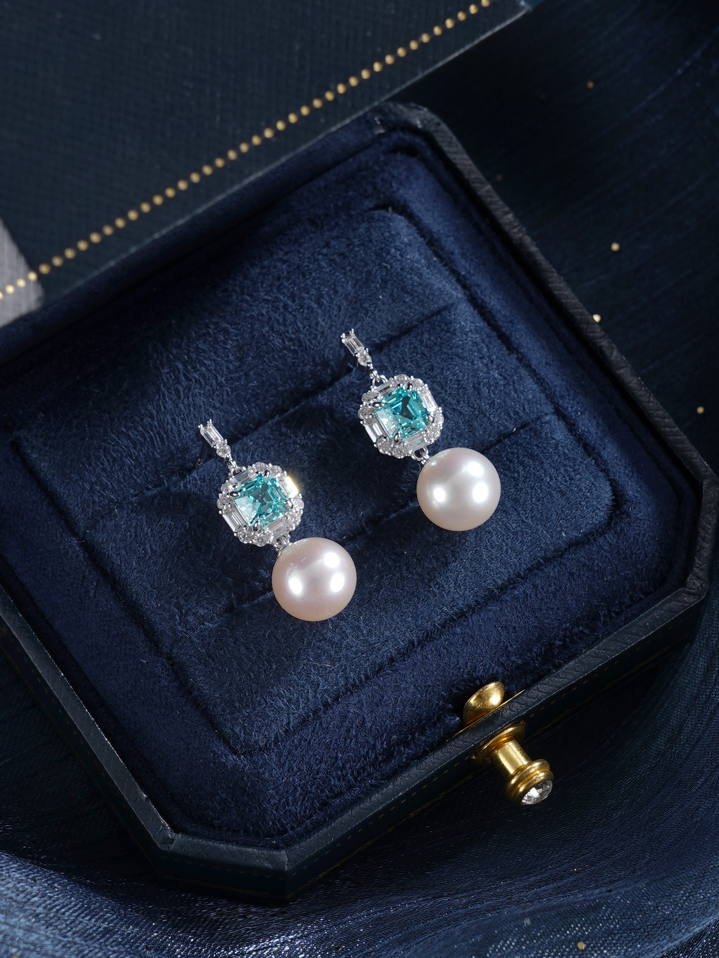 子佩集【优雅蓝调】银S925珍珠惜王妃耳钉【EM3061-XF】8.5mm珠蓝方块2601