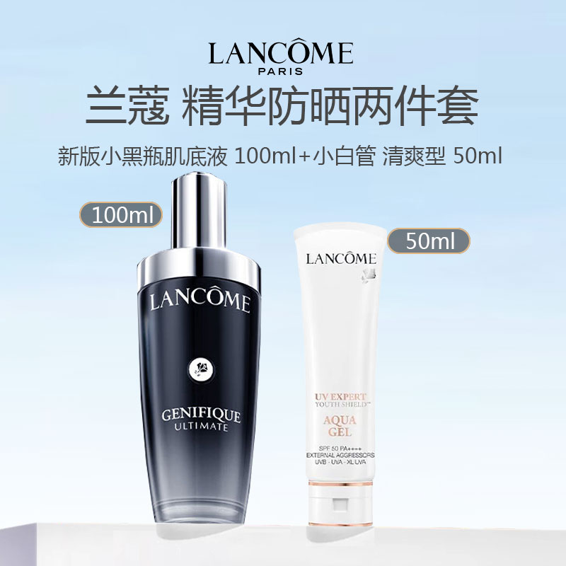 Lancome兰蔻精华防晒组合(新版小黑瓶肌底液50ml/100ml+兰蔻小白管 清爽型 50ml)