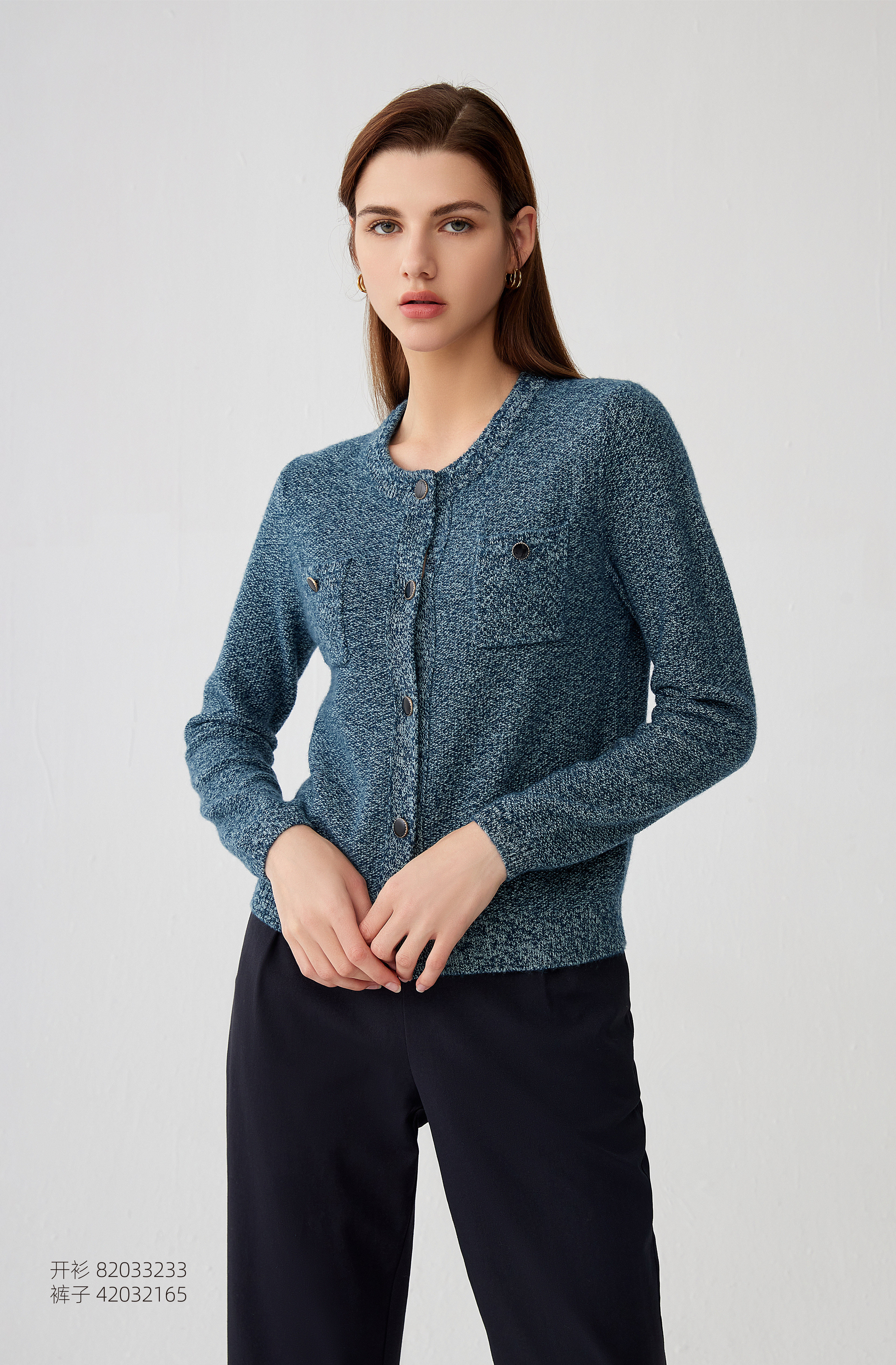【纯羊绒混色纱羊绒开衫】羊绒世家秋冬新品女士100%山羊绒开衫舒适百搭针织小外套