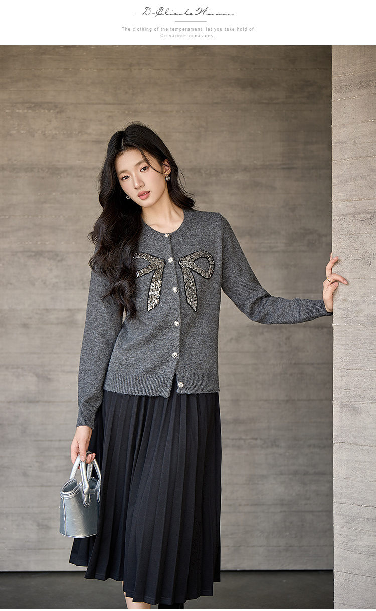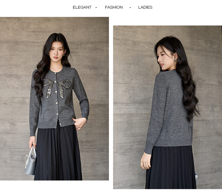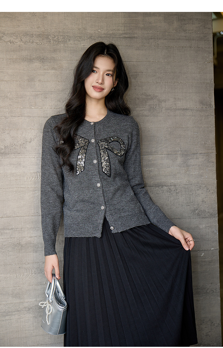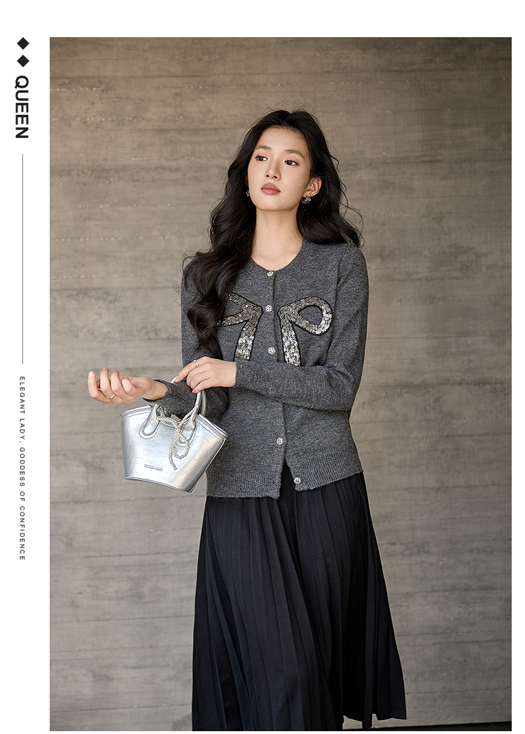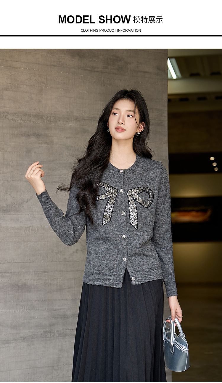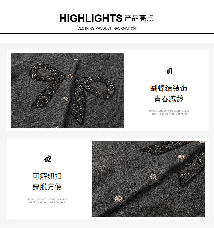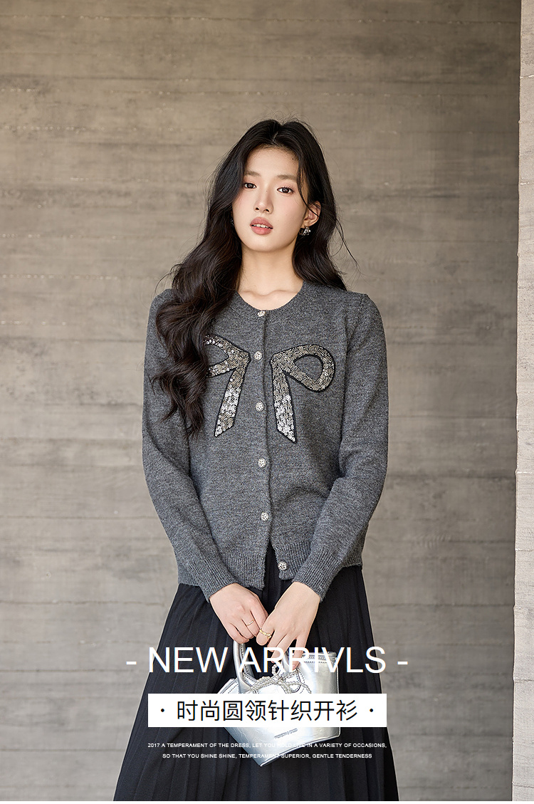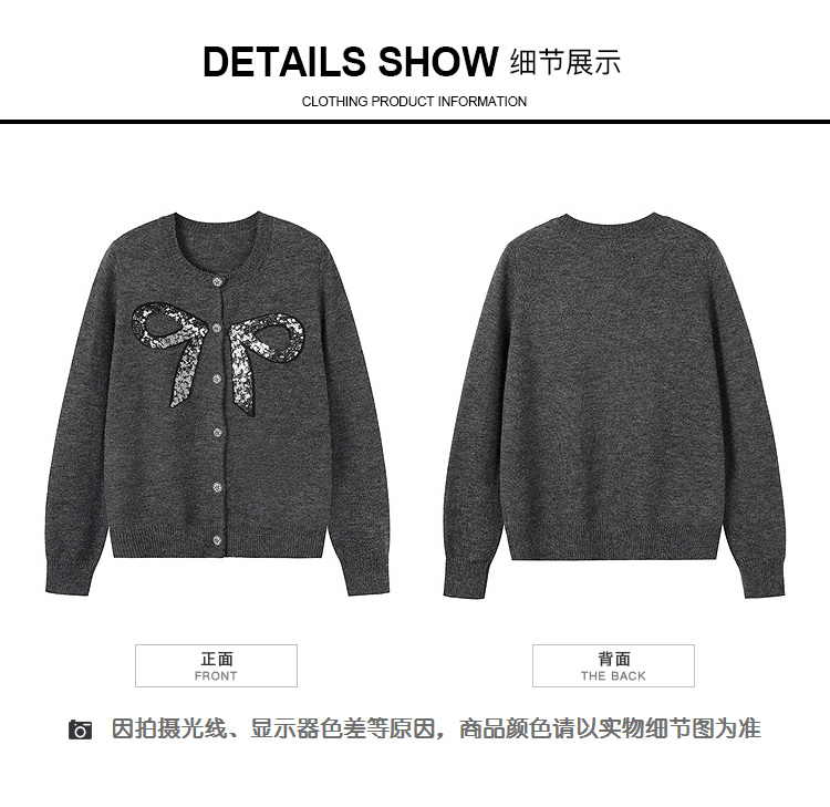 奢姿大码女装2025冬季尚亮片蝴蝶结设计针织衫胖妹妹气质减龄上衣9154670536