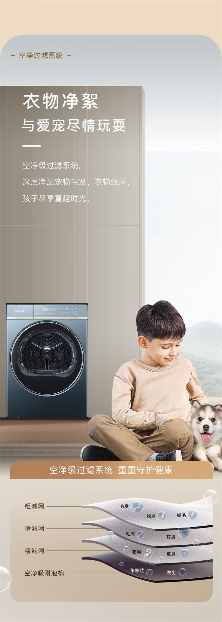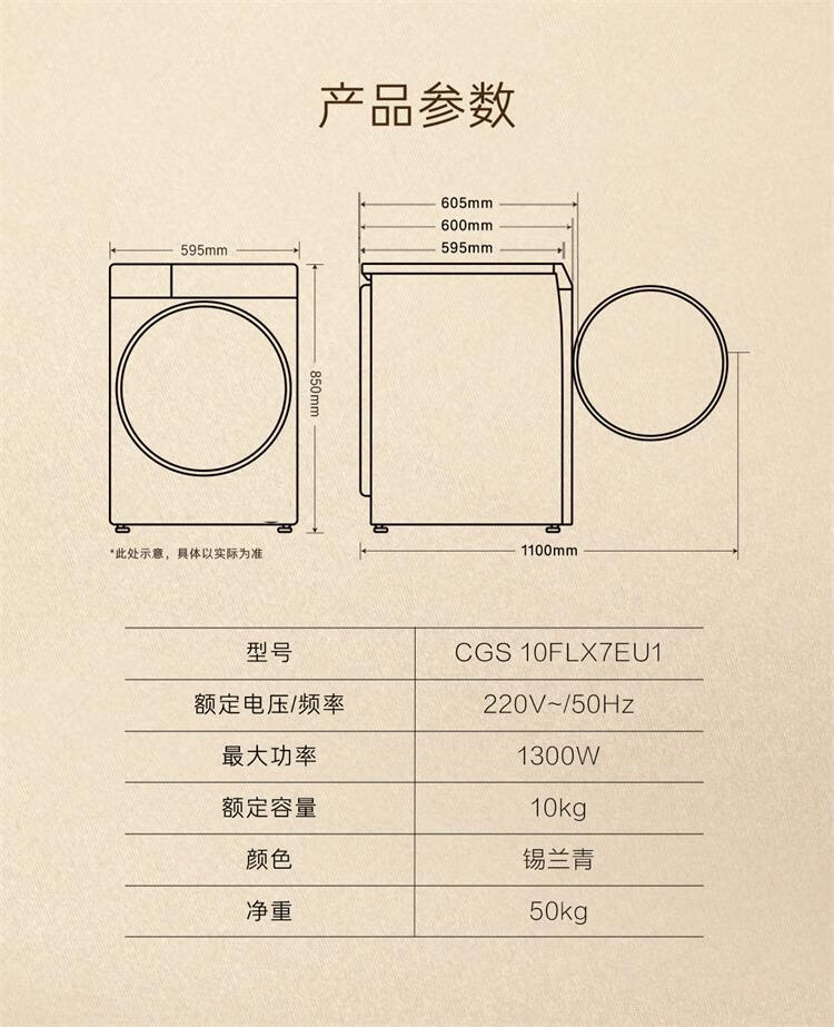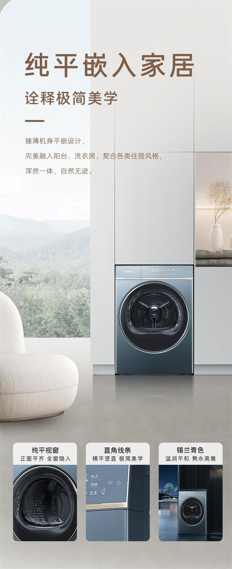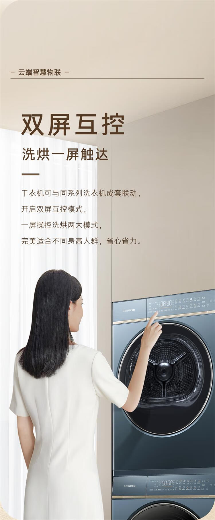 卡萨帝(Casarte)10KG大容量干衣机 超薄平嵌 3D透视判干 洗烘联动双屏互控 CGS 10FLX7EU1