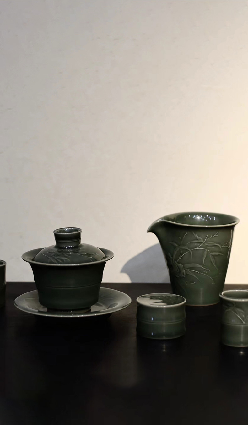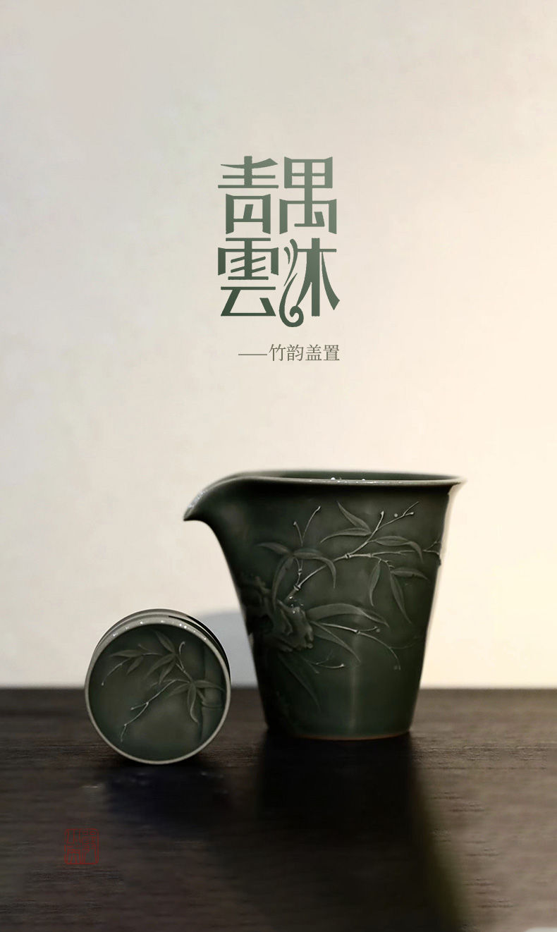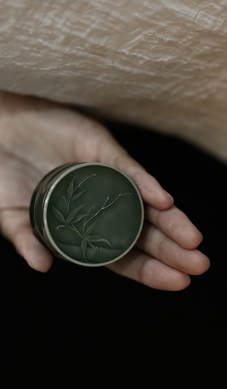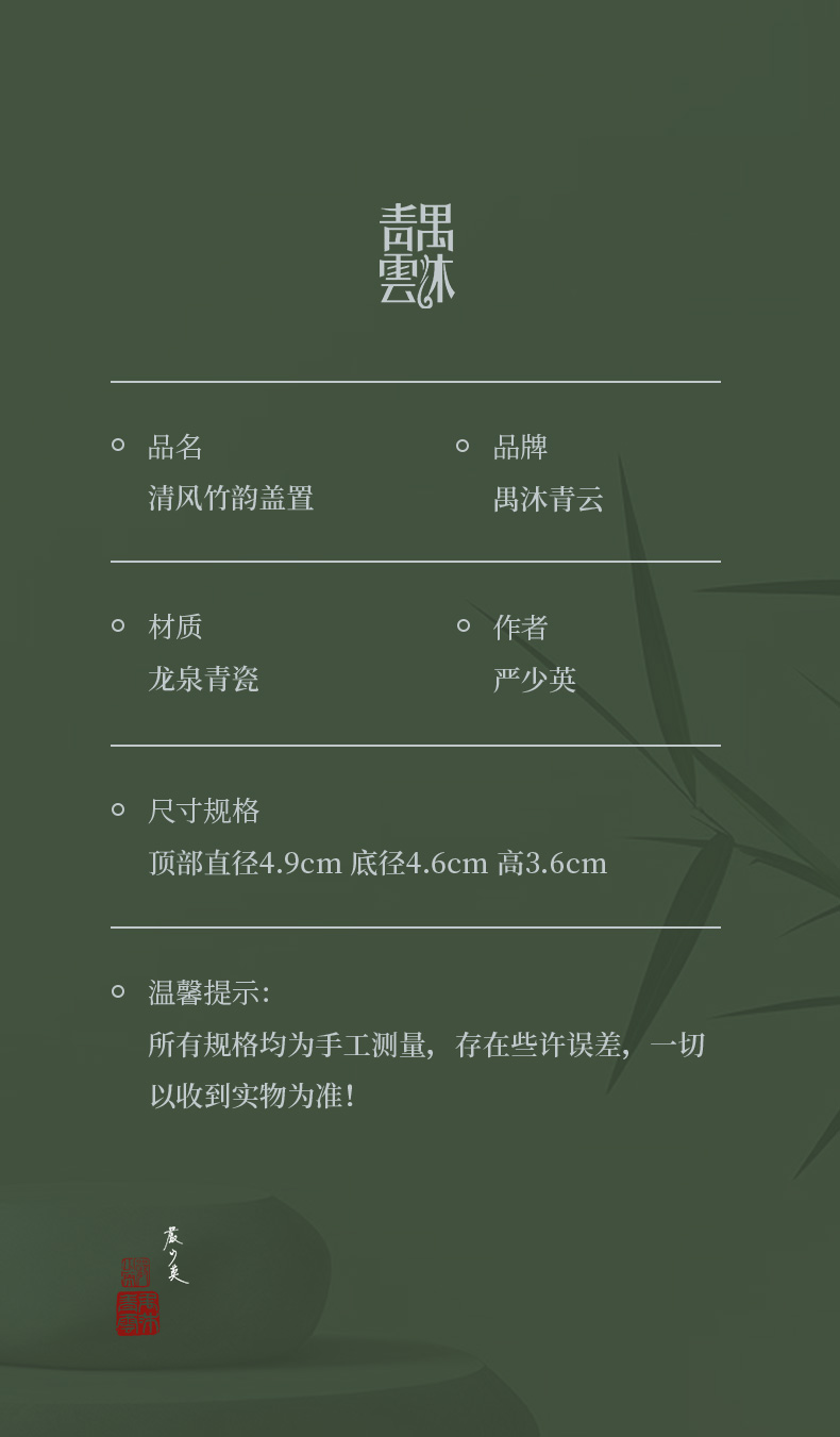 龙泉青瓷严少英清风竹韵盖置茶壶盖托手工陶瓷杯盖托碗盖架盖搁茶具配件