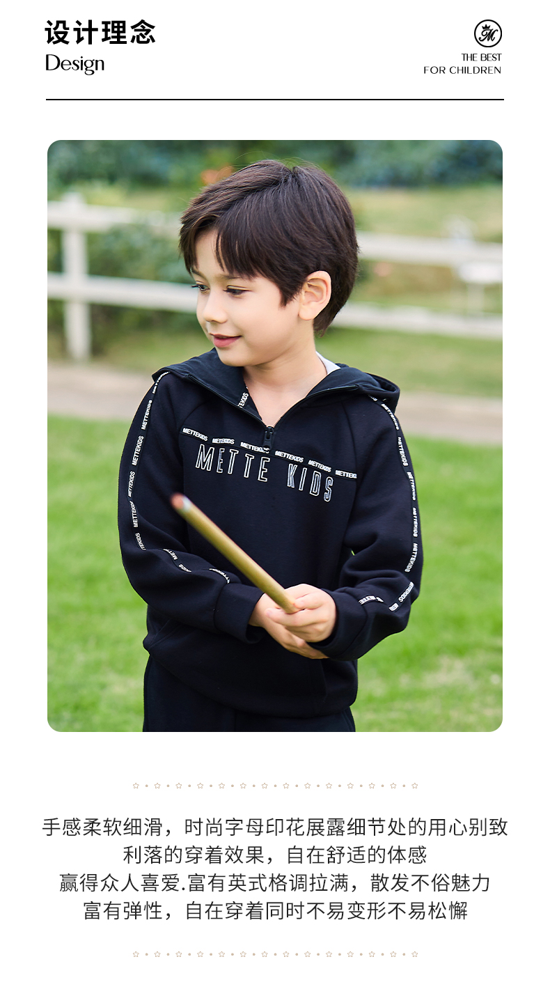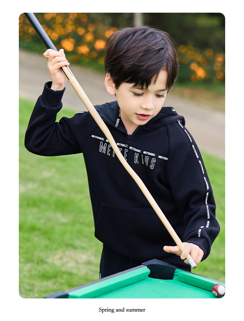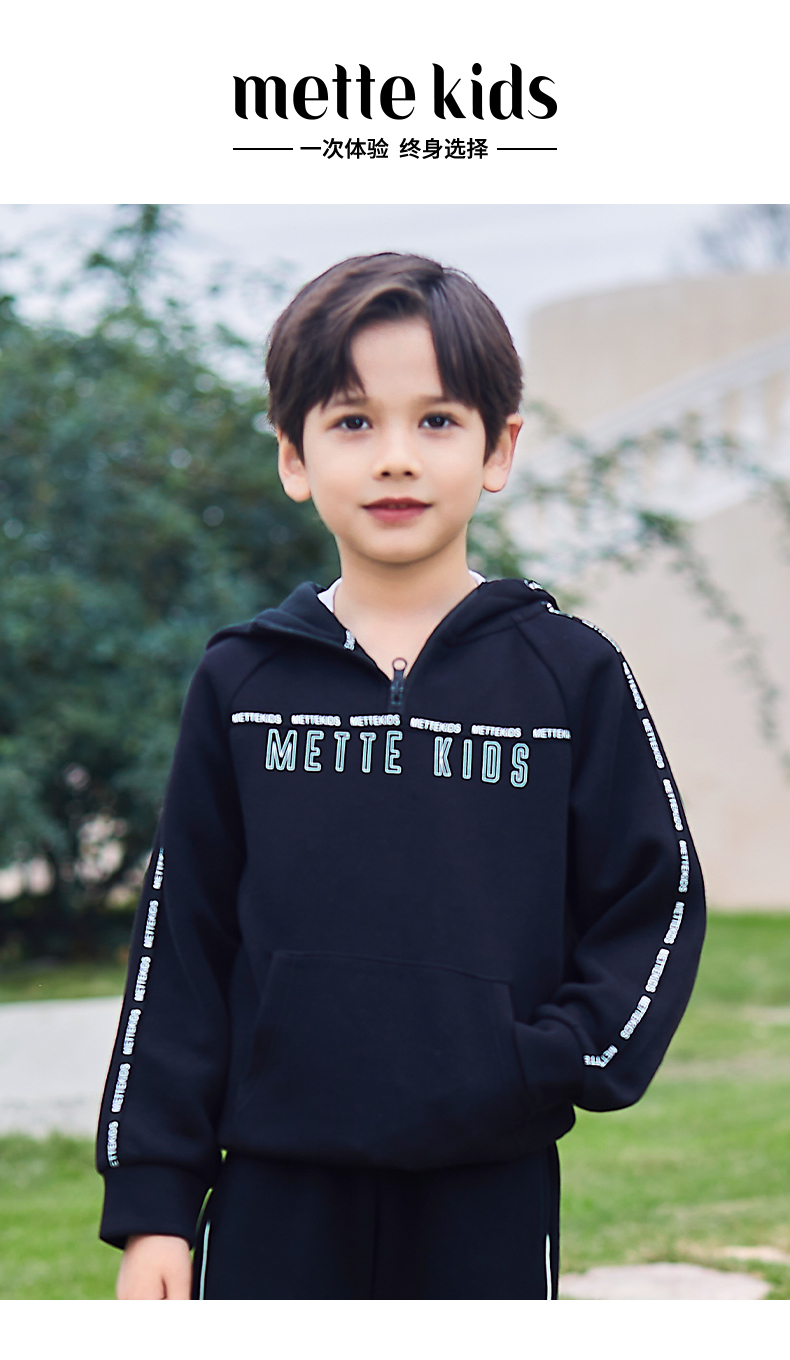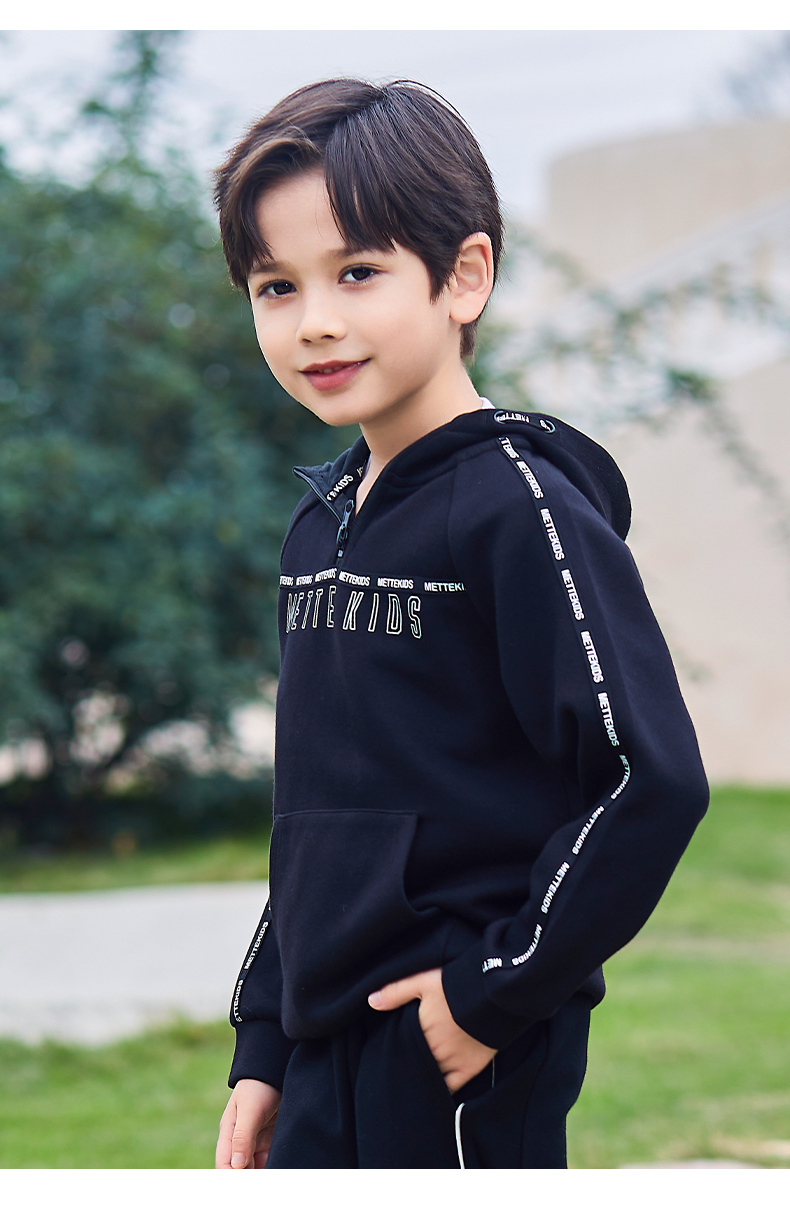 mettekids儿童卫衣春秋新款休闲运动童装男童连帽套头时尚上衣