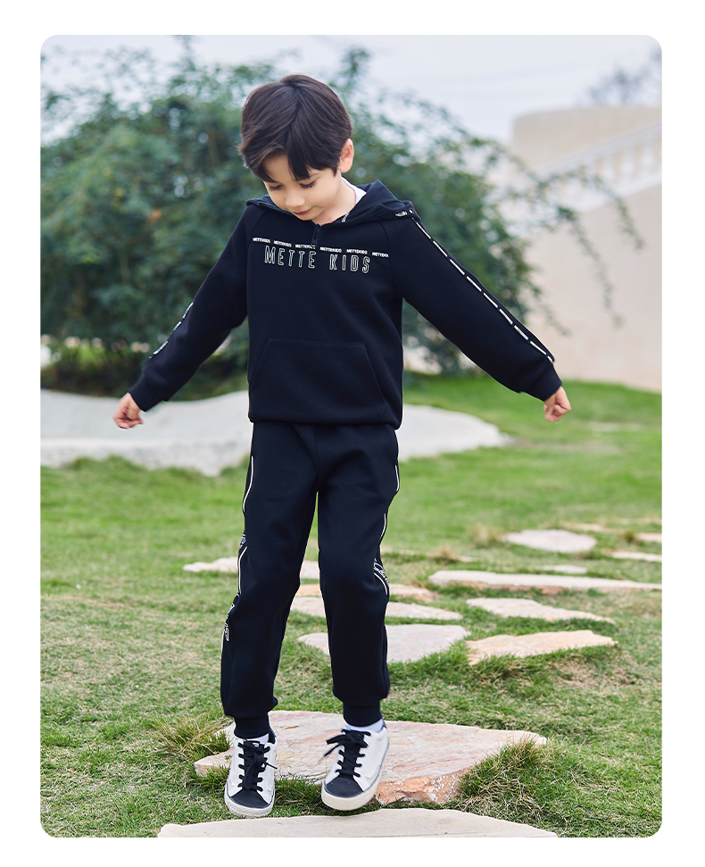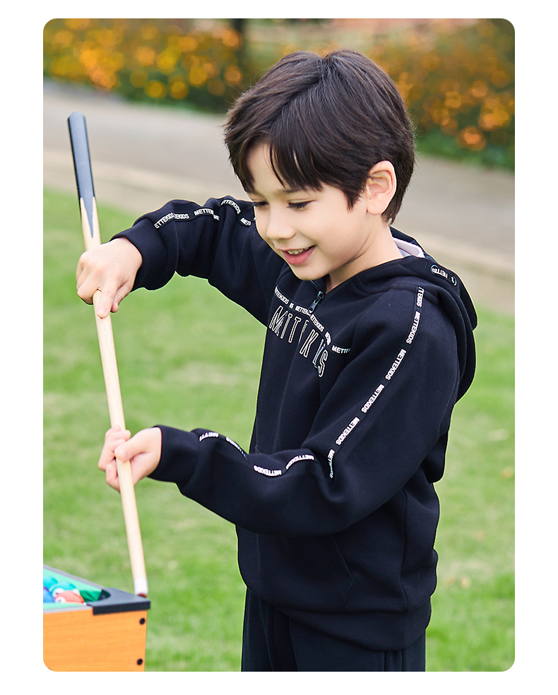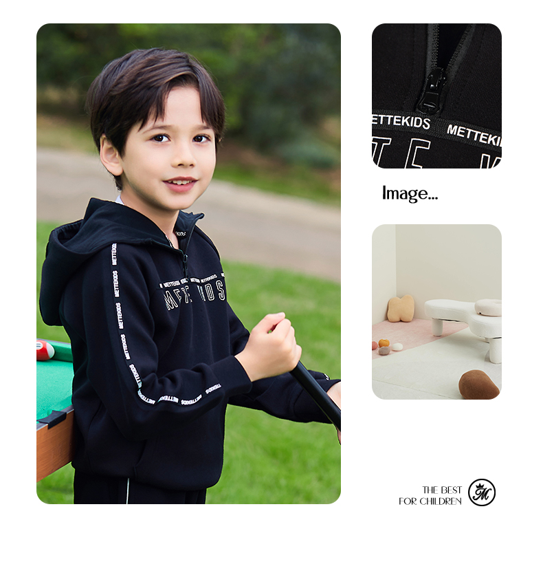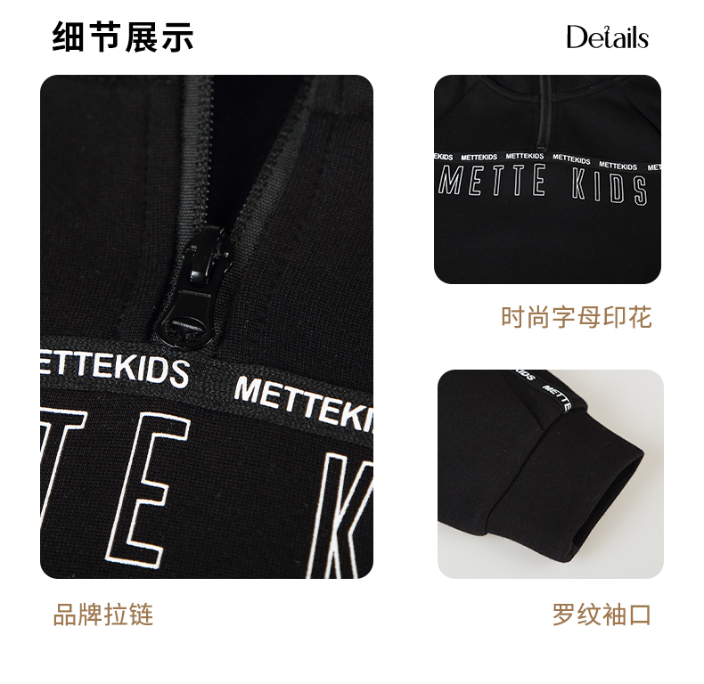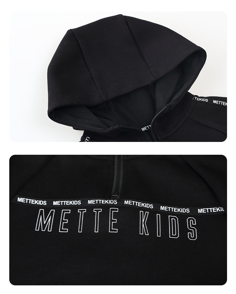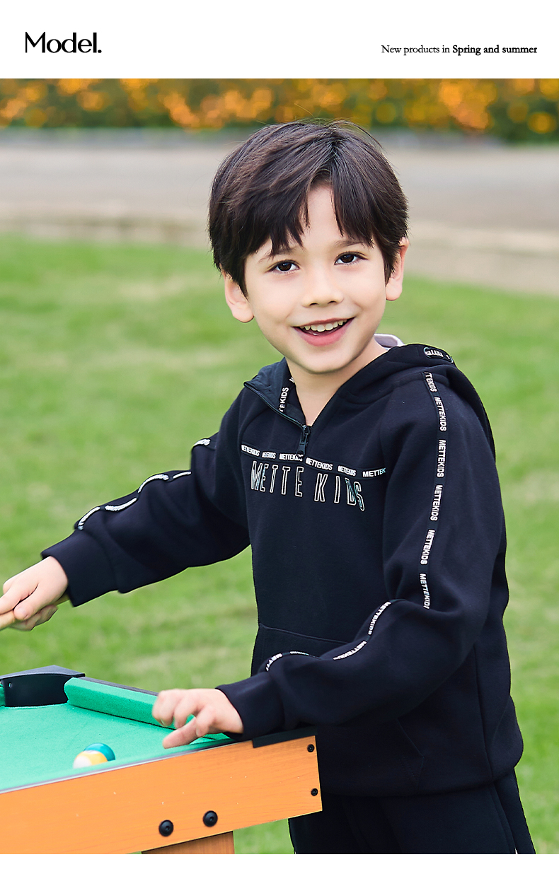 mettekids儿童卫衣春秋新款休闲运动童装男童连帽套头时尚上衣