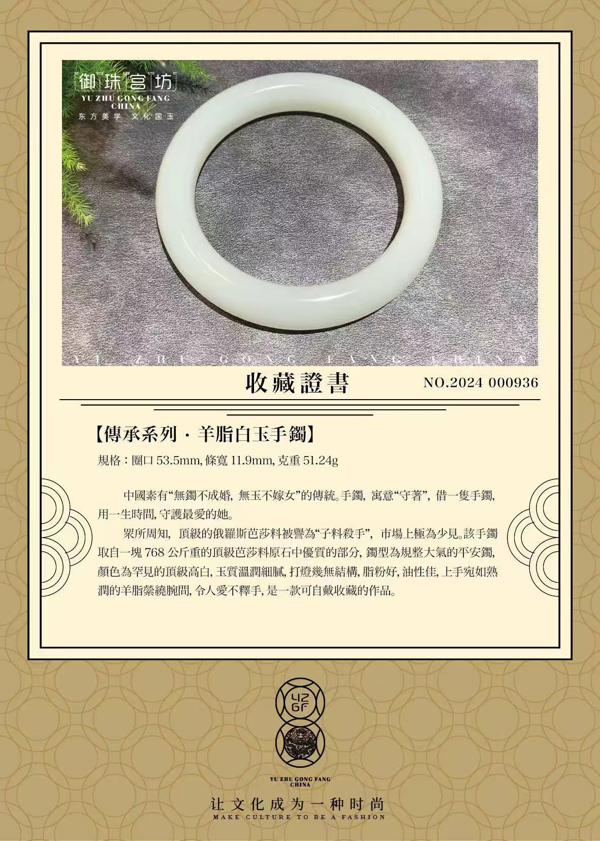 【传承系列·羊脂白玉手镯】 NO.2024 000936