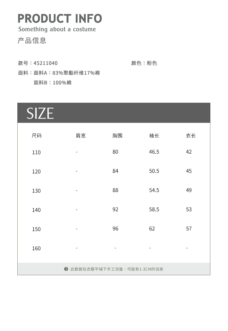 | 货号: 45211040 | 参考身高: 110/52 120/56 130/60 140/64 150/68 |