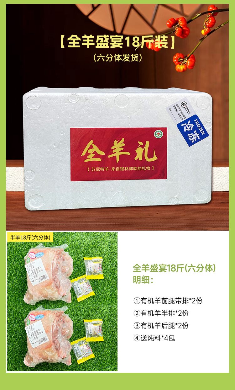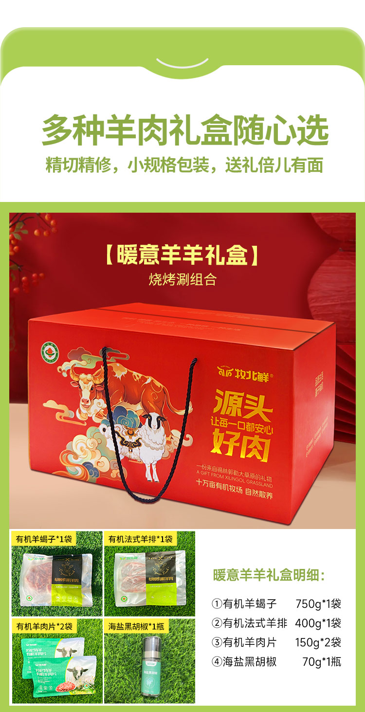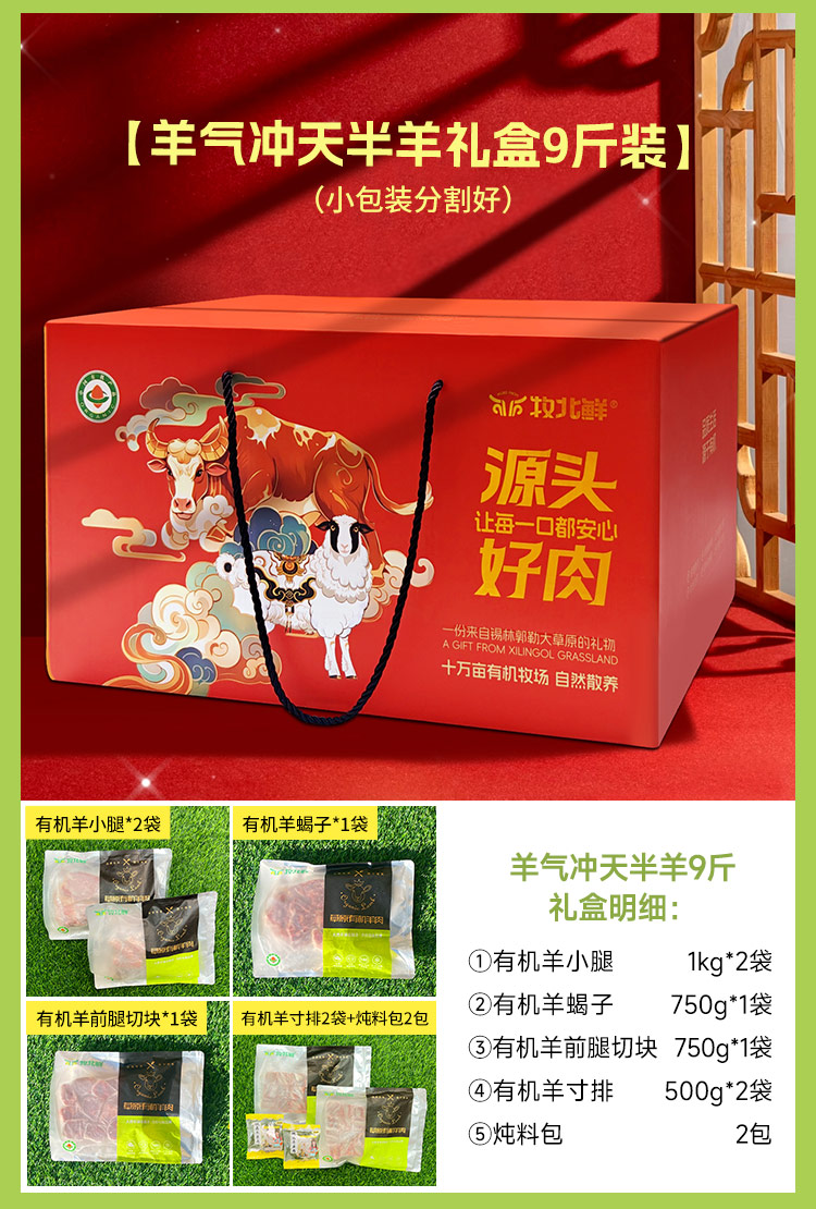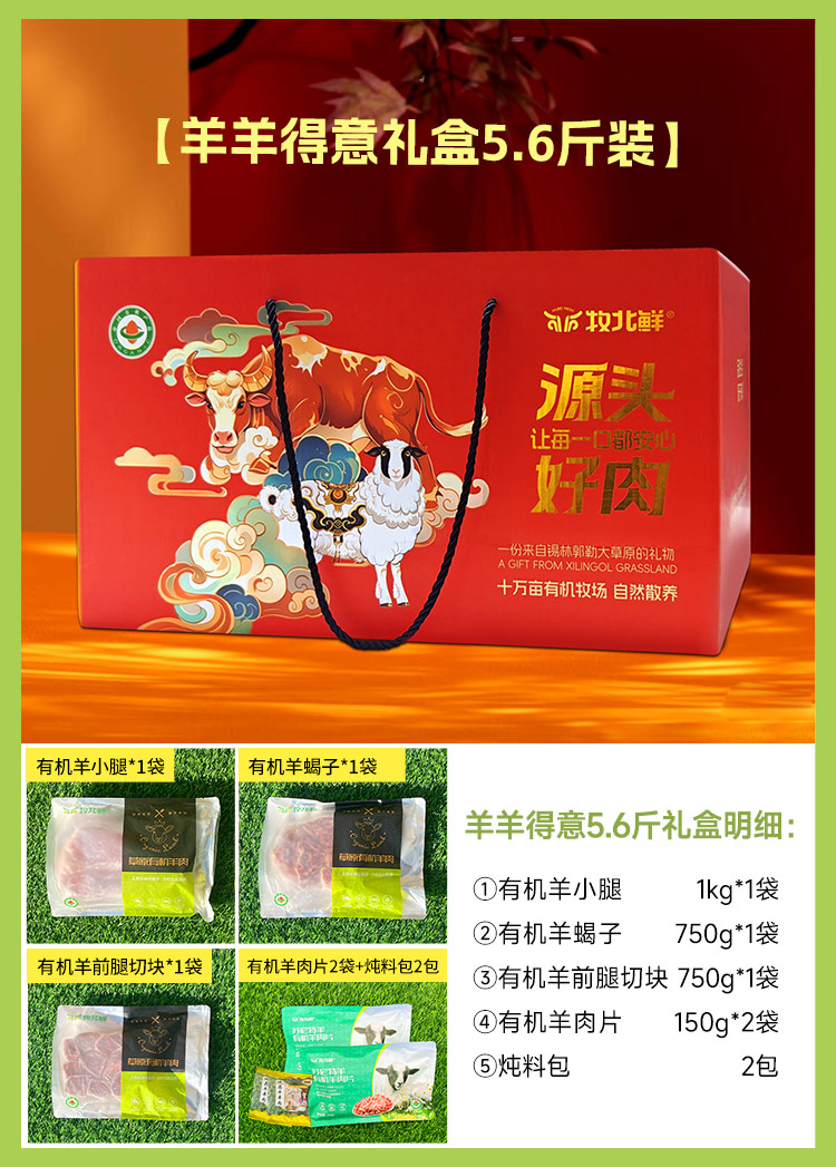 【内蒙古草原散养苏尼特有机羔羊肉礼盒】品种珍贵 数量稀少 从出生到餐桌只吃草 鲜嫩不膻 多种规格任选 送礼彰显品质心意