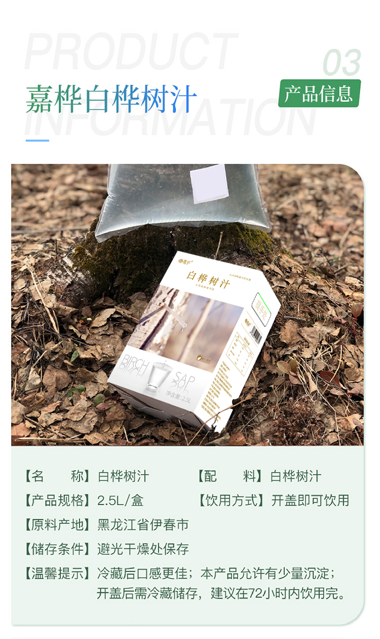 嘉桦白桦树汁天然有机小兴安岭原液原汁植物饮品专利锁鲜2.5L盒装