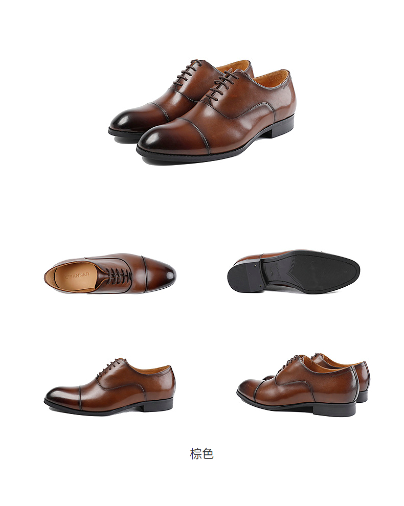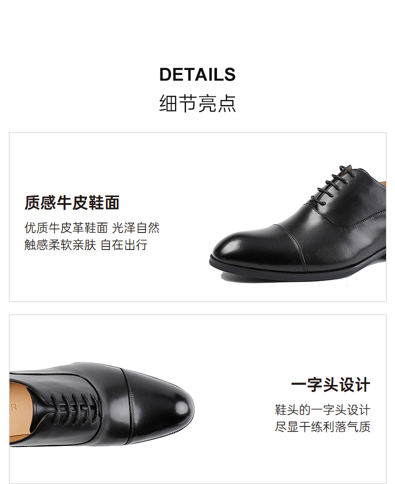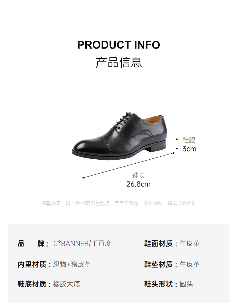 千百度2026春季男鞋优质牛皮革鞋面光泽自然商务正装A26113704