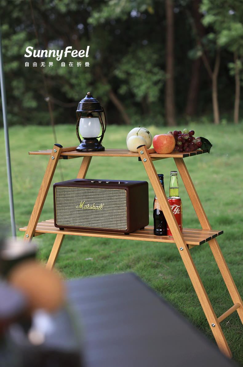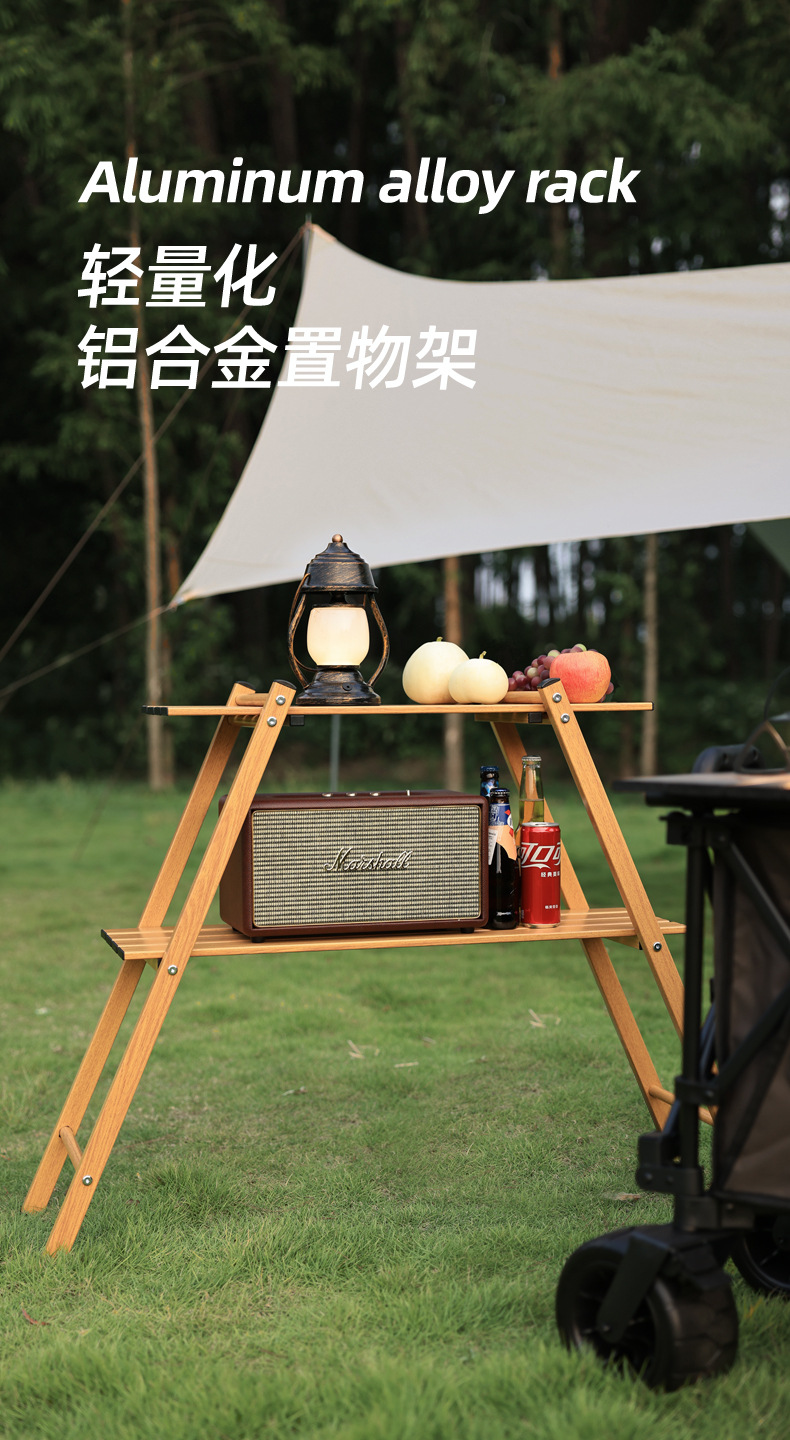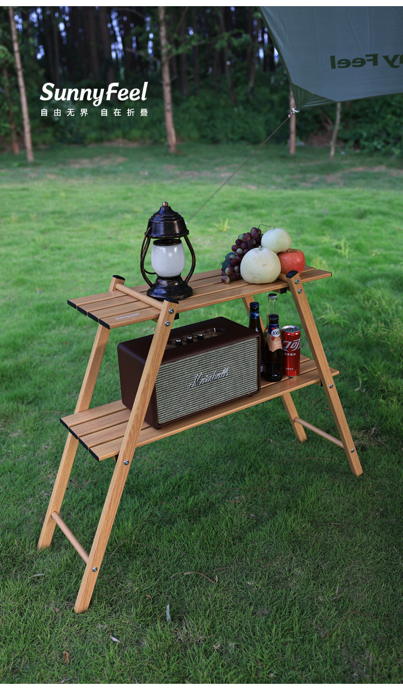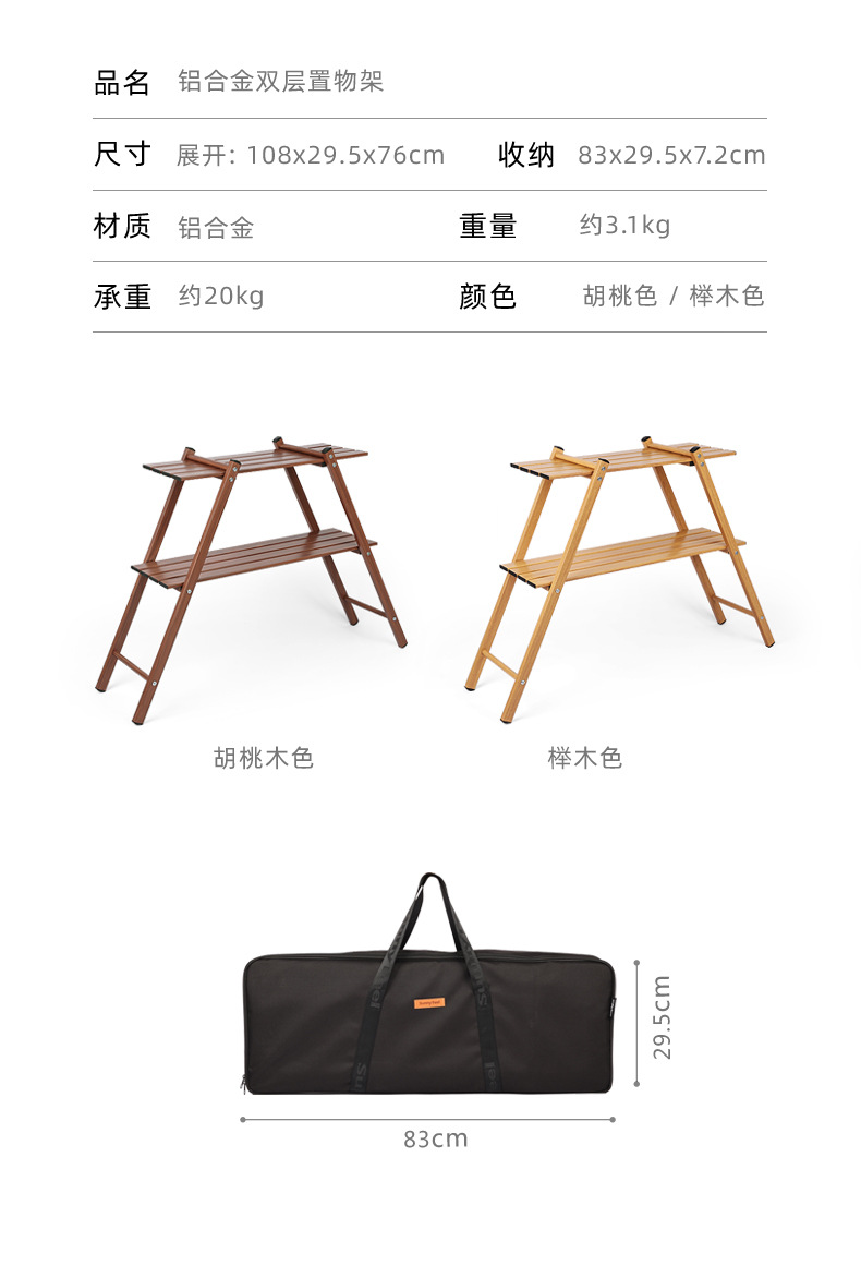 SunnyFeel山扉户外露营双层置物架_铝合金折叠便携轻量化置物架子