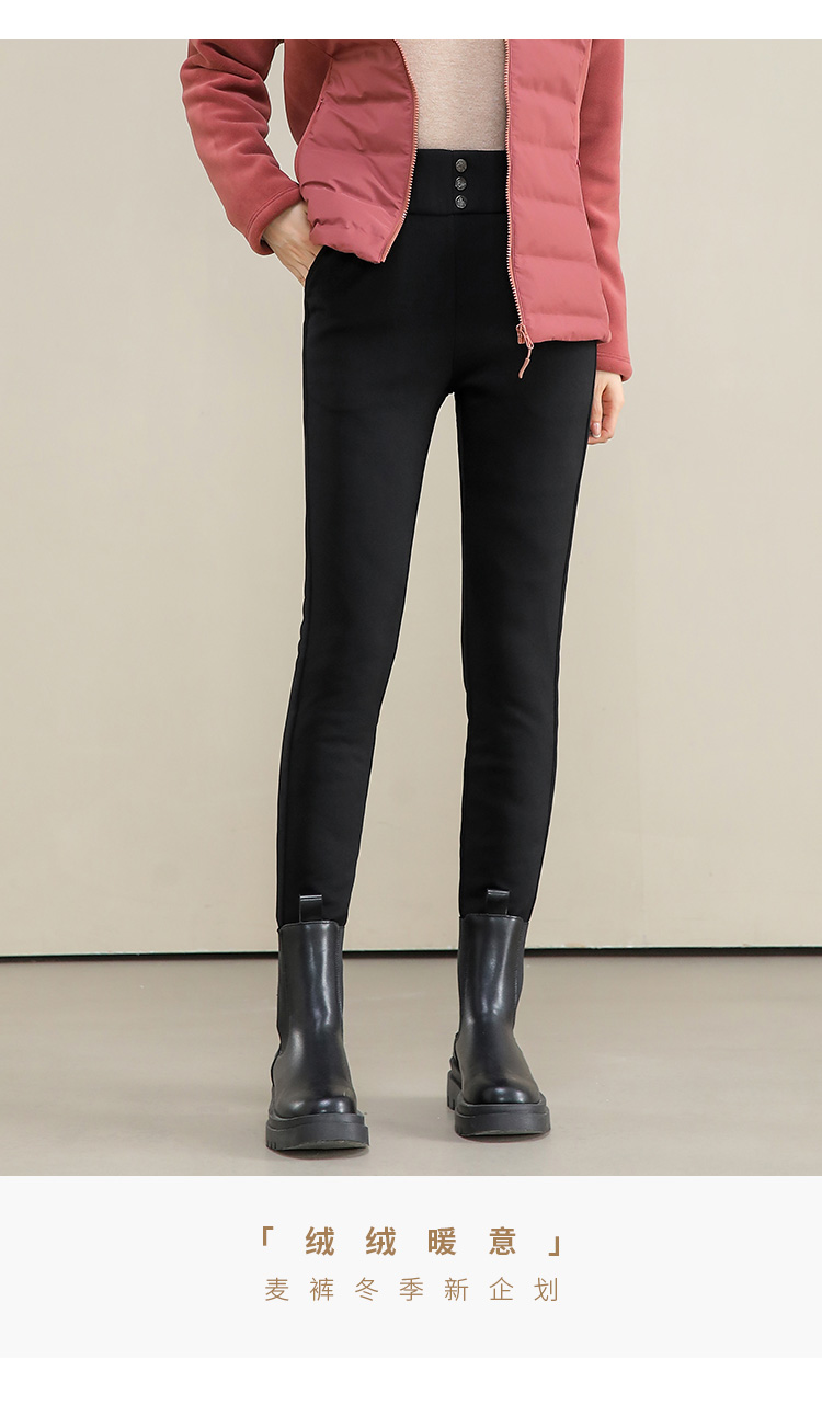 麦裤MK52385 加绒直筒裤/束脚裤 高腰宽松显瘦松紧腰休闲裤