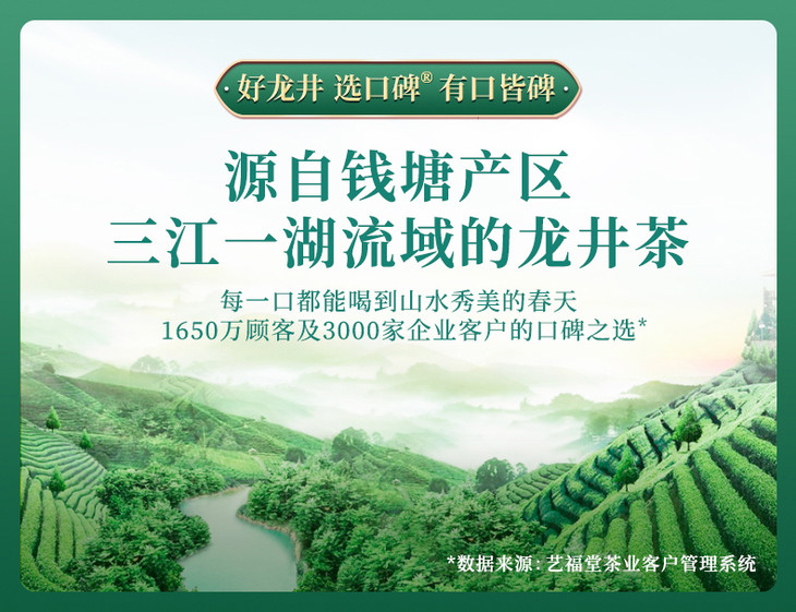【第2件半价送水晶杯】艺福堂 明前二级龙井 口碑茶EFU6+ 2025新茶 200g/包