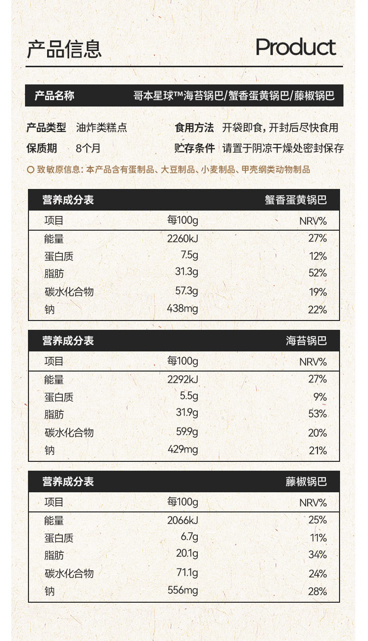 【私域专属】哥本海苔锅巴/蟹香蛋黄锅巴/藤椒锅巴 鲜香酥脆 干净配方 拒绝复杂添加 每罐约208g
