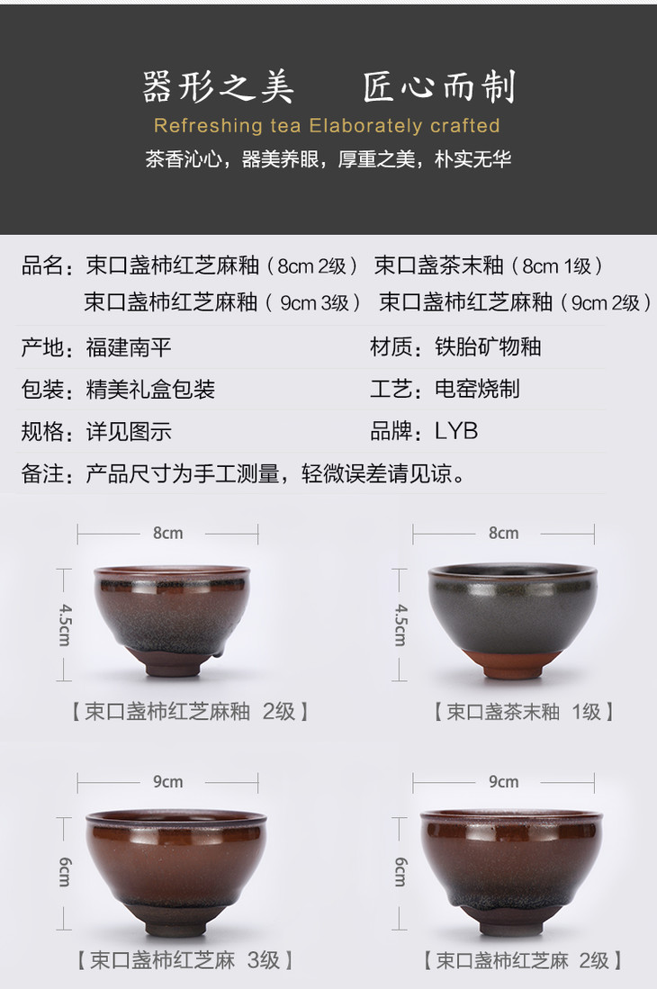 LYB建盏 杨兴生 传统油滴盏、紫金敛口盏、玫瑰金盏、紫金束口盏、紫金束口钵