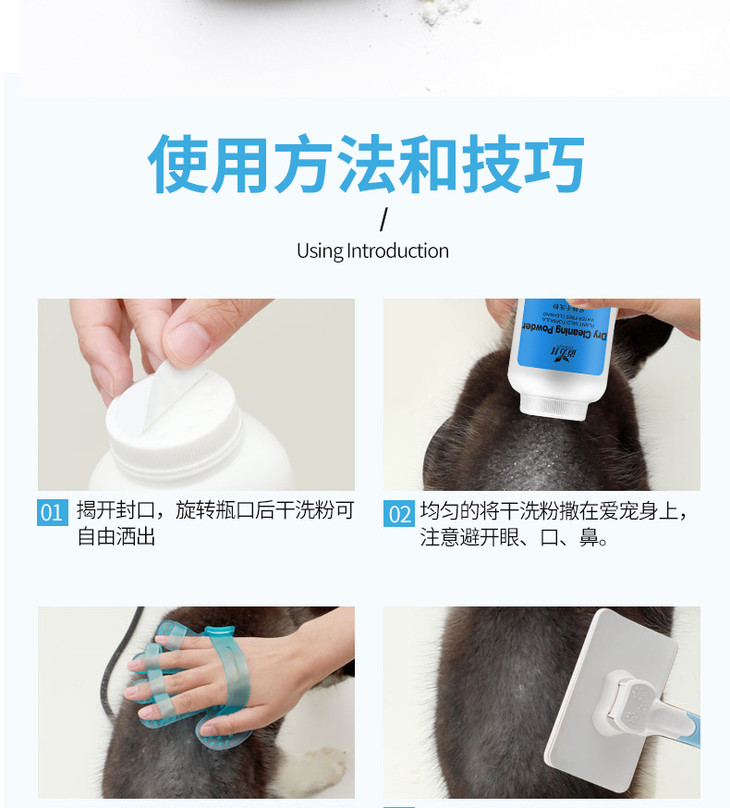 道力其干洗粉260g 柠檬/ 玫瑰/薄荷 多香型 宠物免洗香波 杀菌除臭