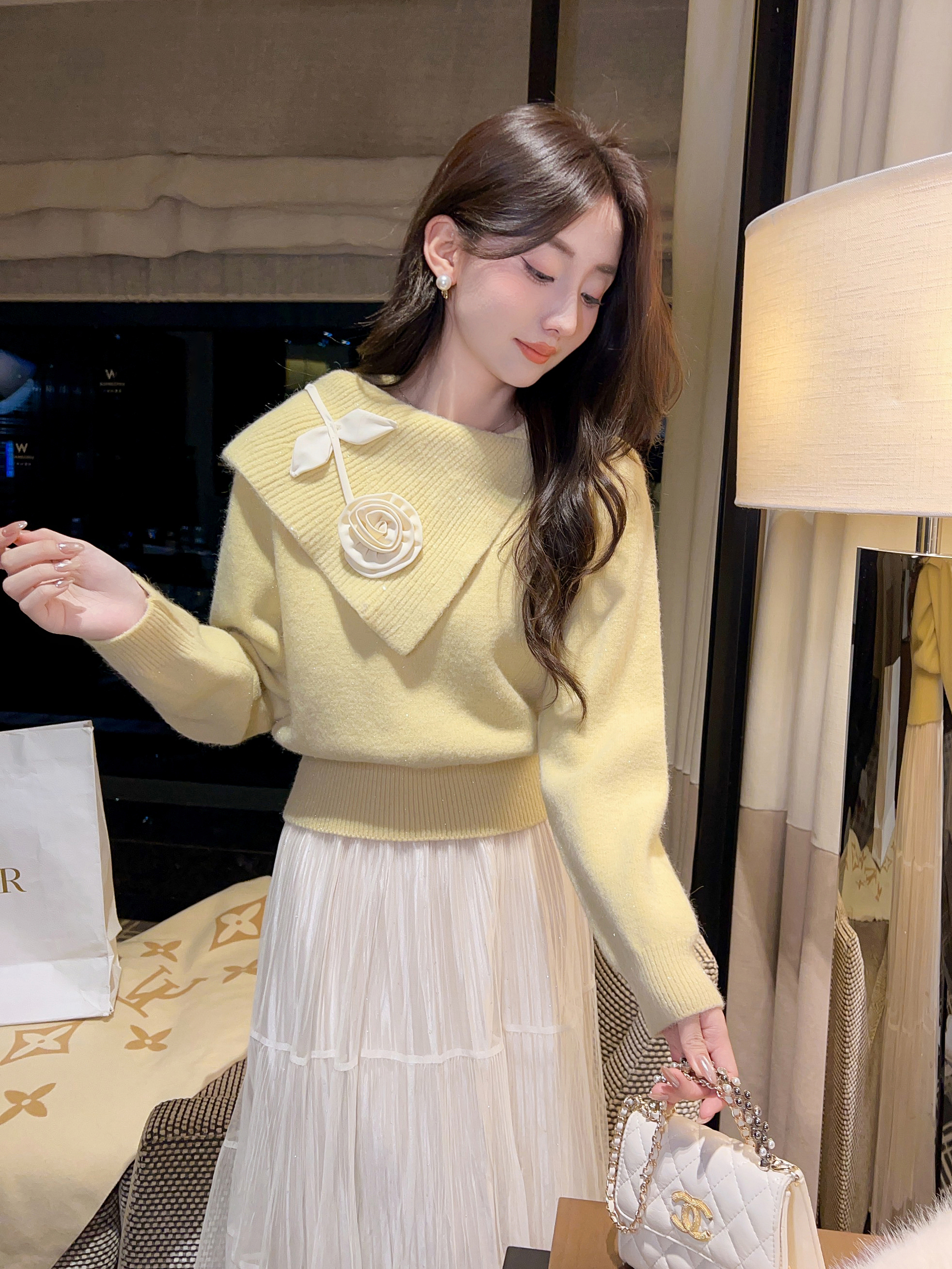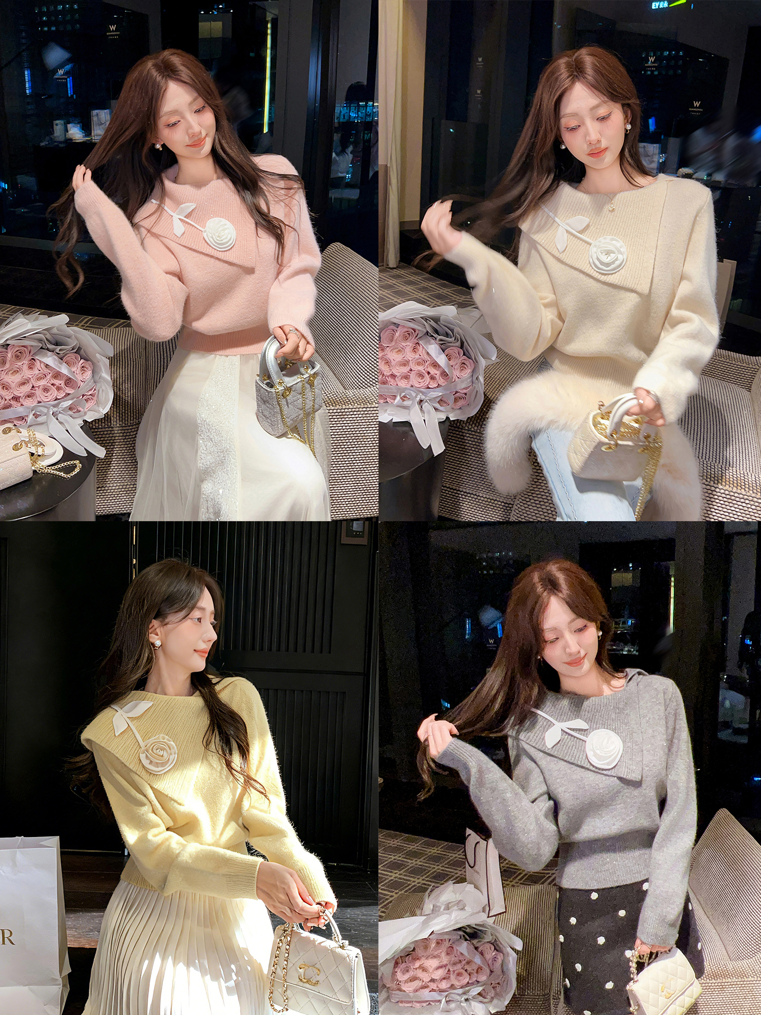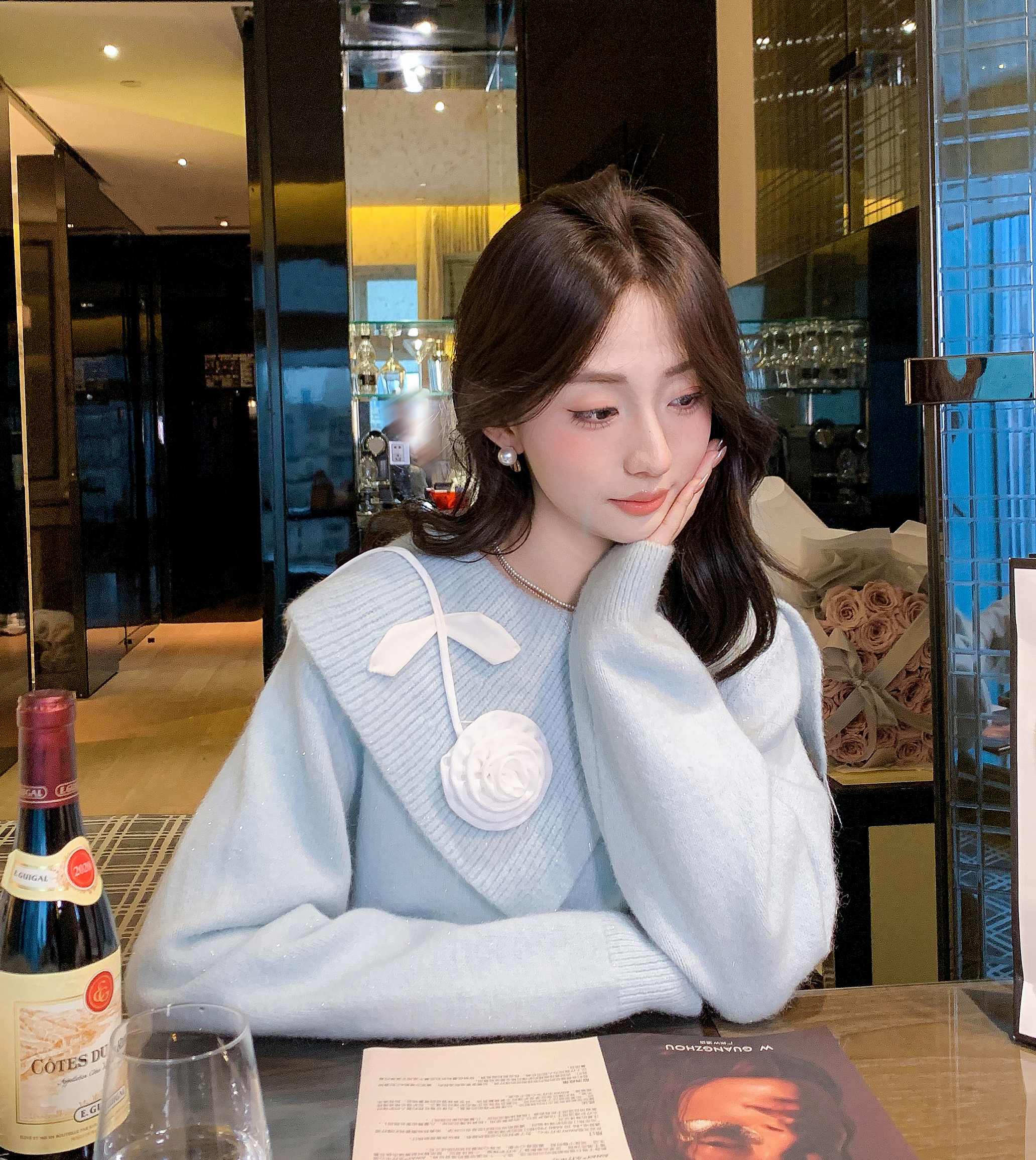张心子【午后花园】法式立体花气质秋款长袖女新款显瘦百搭针织衫 U2508010