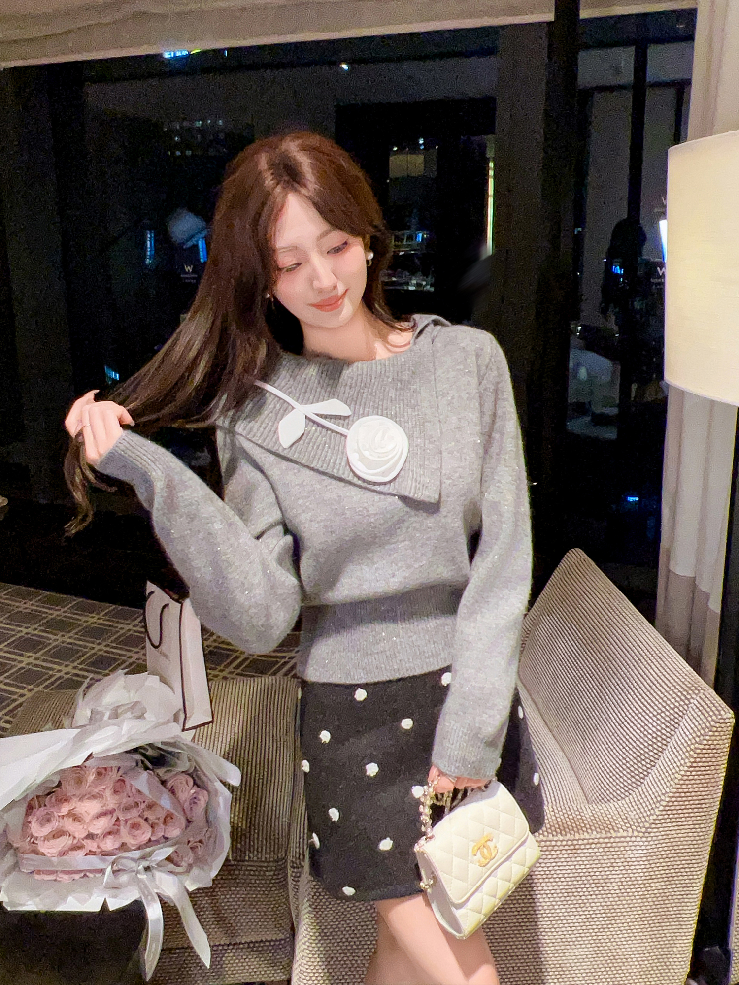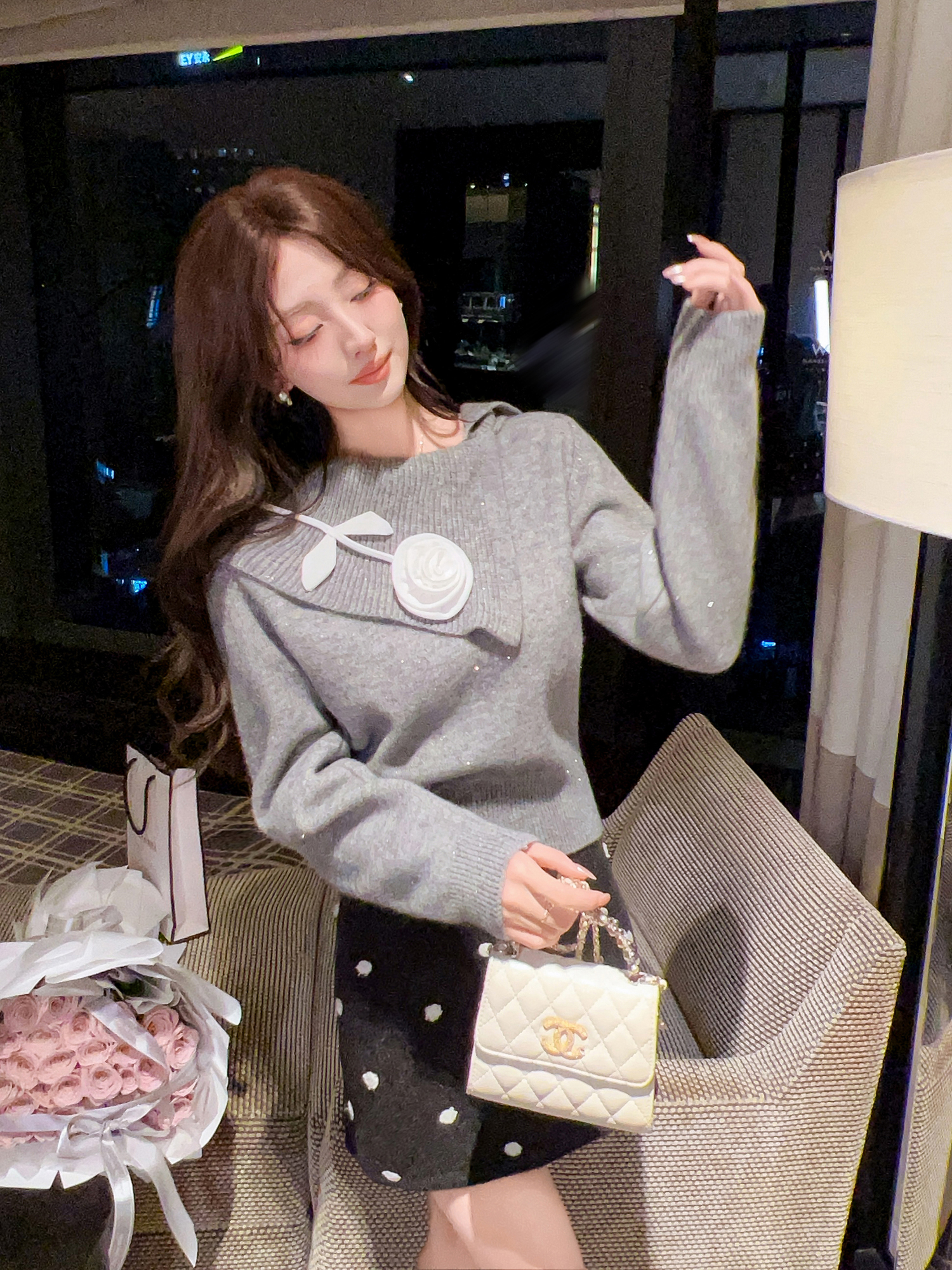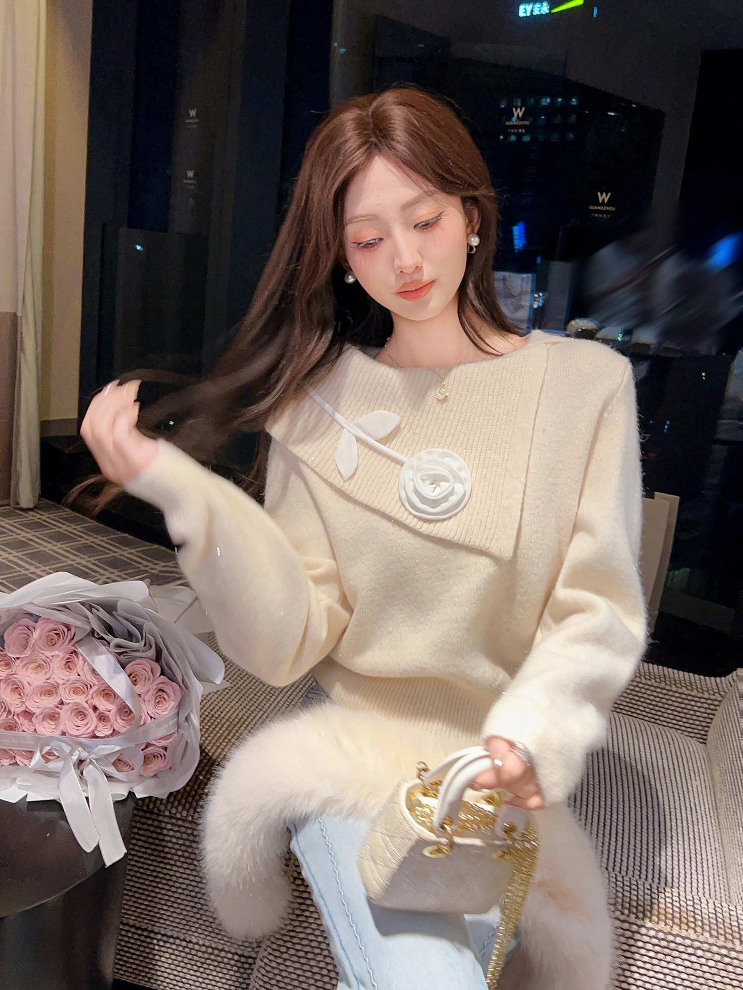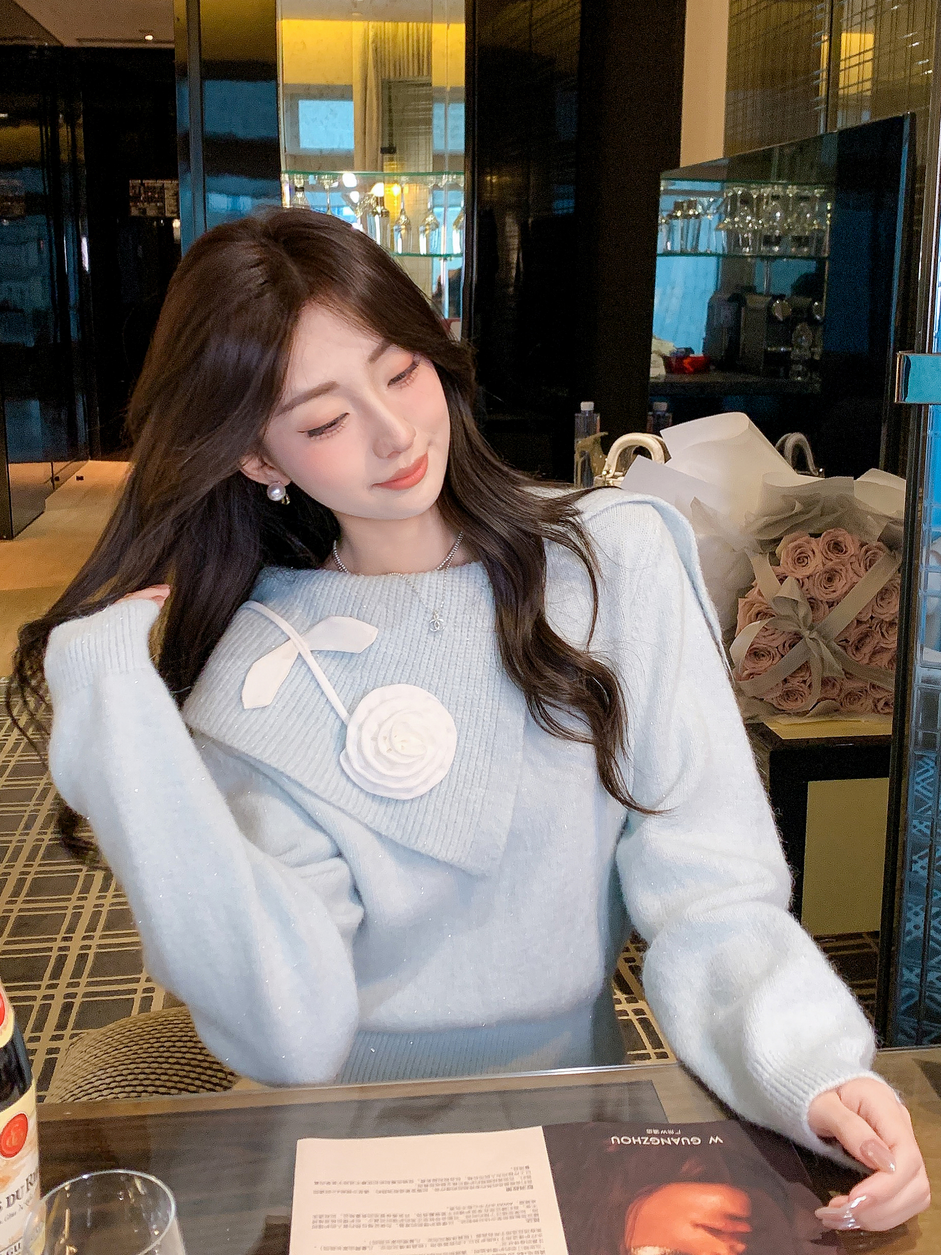 张心子【午后花园】法式立体花气质秋款长袖女新款显瘦百搭针织衫 U2508010