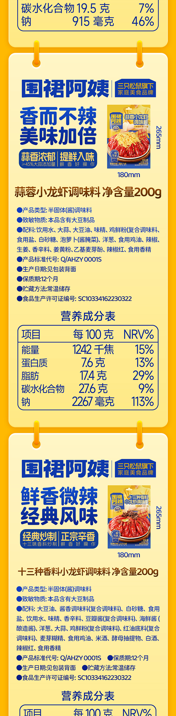 三只松鼠 围裙阿姨 _小龙虾蒜蓉/麻辣/十三香调味料200g