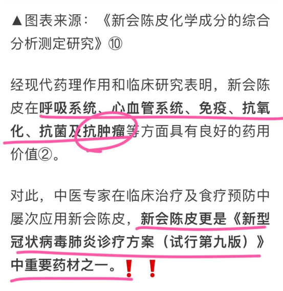 👨⚕️钟南山院士推荐新会陈皮(柑茶), 能有效预防并减轻空气污染中有害气体引起的肺部炎症, 包括对肺泡间隔的破裂、小气道重塑、粘液高分泌等具有一定保护作用, 是秋冬老少皆宜的良茶。✅✅ 早在2015年钟南山研究团队 就开始进行新会陈皮(柑茶)的保健功效研究 历时2年多的动物实验研究结果表明: 新会陈皮(柑茶)能有效预防和减轻空气污染中有害气体引起的肺部炎症! 包括对肺泡间隔的破裂、小气道重塑和粘液高分泌等具有一定保护作用。 ❗❗️⚠️⚠️“新会陈皮”更是作为这次新观肺焱中试行的中药💊,有着巨大的药用价值!!! ❗❗️⚠️⚠️️“新会陈皮”更是作为这次新观肺焱中试行的中药💊,有着巨大的药用价值!!!