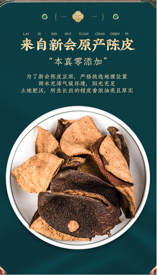 ⭕⭕新会陈皮顾名思义,以陈为胜。很多人理解的陈皮就是橘子皮, 其实是不对的。正宗陈皮只能以新会茶枝柑柑皮为原料。而且不是所有的“陈皮”都具备价值。 🤙🤙🤙储存三年以上的新会陈皮,烈性和果酸味会随着时间减少, 陈香味逐渐增加,才适合使用。三年陈皮,越陈越香,决定了陈皮的年份越久,它 的香味越浓,营养越高。